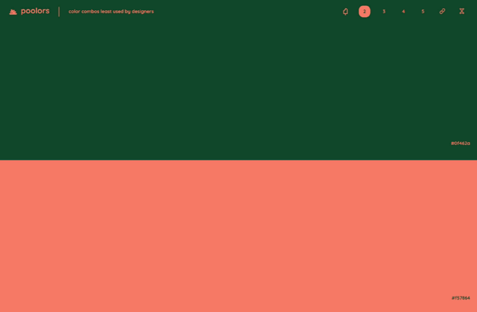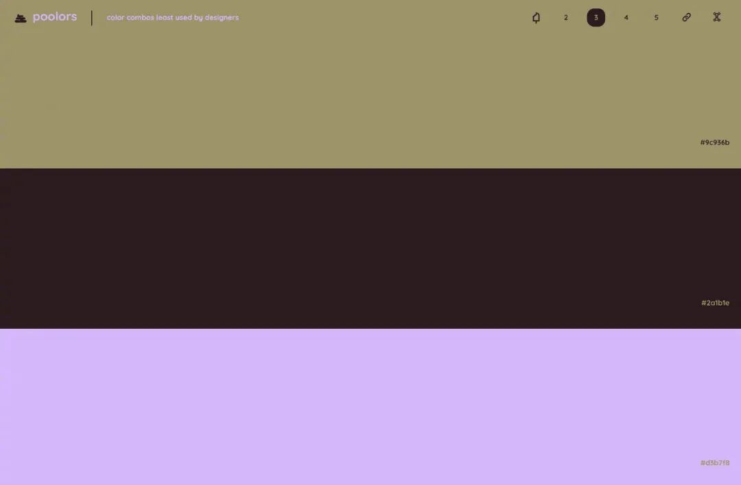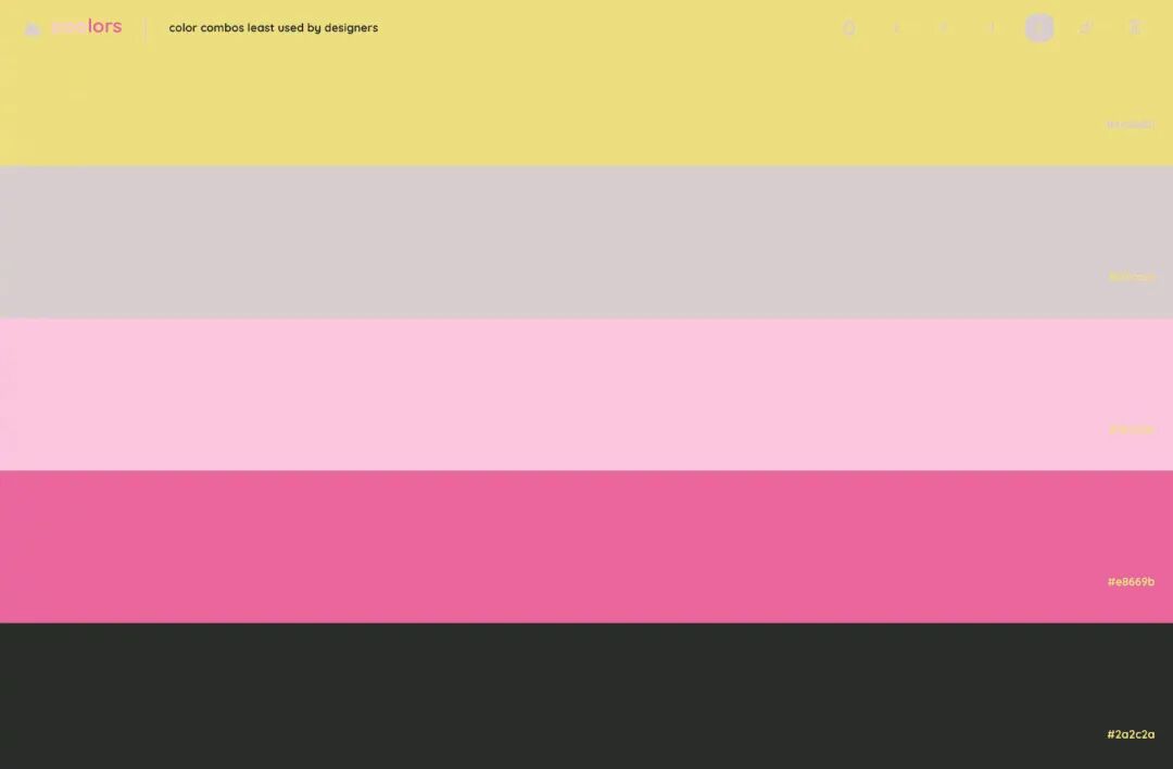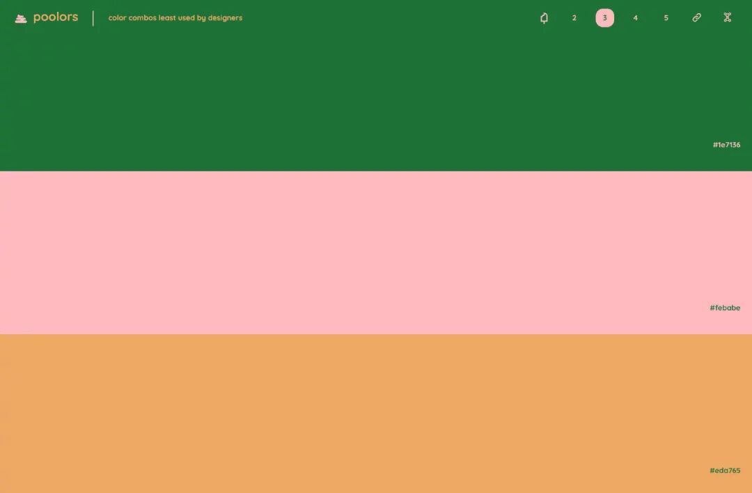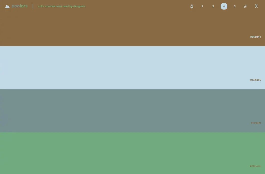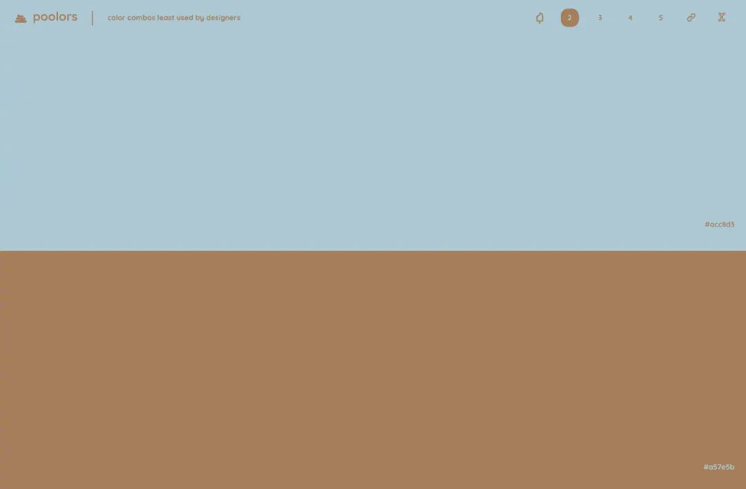 今天分享一个我一直很喜欢的干净、通透的配色工具!没有多余的干扰,点击屏幕就会随机生成色彩搭配,分别有 2、3、4、5 种搭配方式,喜欢哪一种颜色,直接覆制色值就可以啦,整个界面操作超级简单,配色缺乏灵感时,可以用一用~