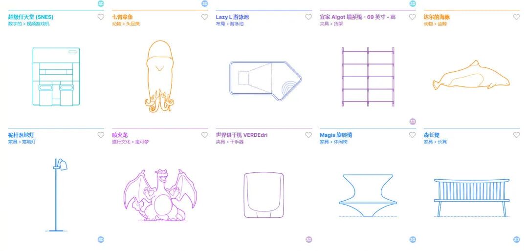 竟然还有尺寸图参考数据库!这个网页记录了我们日常生活中的物品和空间,标准测量尺寸图,不仅包含建筑物的楼梯、办公桌、沙发,甚至还有蝎子、淡水海绵等等。每一张图都是线稿形式,并且又正视图、侧视图等图稿展示,说是图标库也不为过。图纸下方还会展示一些相关问答与知识科普,奇奇怪怪的知识又增长了