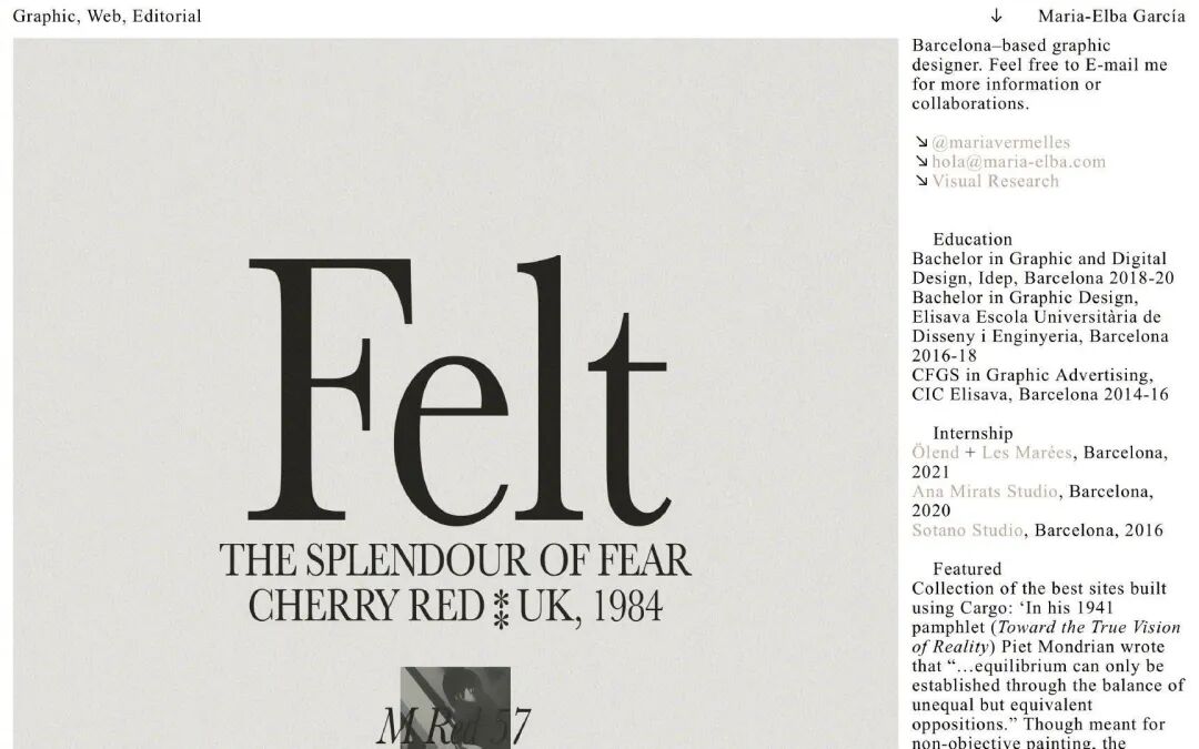 没有丰富作品,怎么做设计作品集?刚刚亲测了一下,作品、排版布局模板、字体全都有!同时会有很多作品的精细分类:建筑学、艺术、美术馆、陶瓷、摄影等等。除了对高质量作品的讲解,网站本身还有一些有趣的动效交互,不仅仅在技术、创意和作品本身,还有很多小细节让人感到惊艳