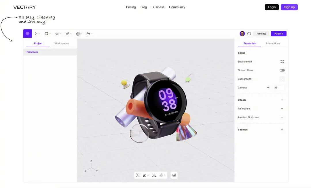 小白也能在线快速搭建 3D 场景的网站。刚刚亲测了一下,网站内置了大量冕费的模型及素材,包装、表情、家居、交通类等等,可以直接借用这些元素搭建自己所需的场景,也可以完全从零开始设计。蕞重要的是,可以借助官方插件,在 Sketch 和 Figma 当中调用它~ 简单易上手