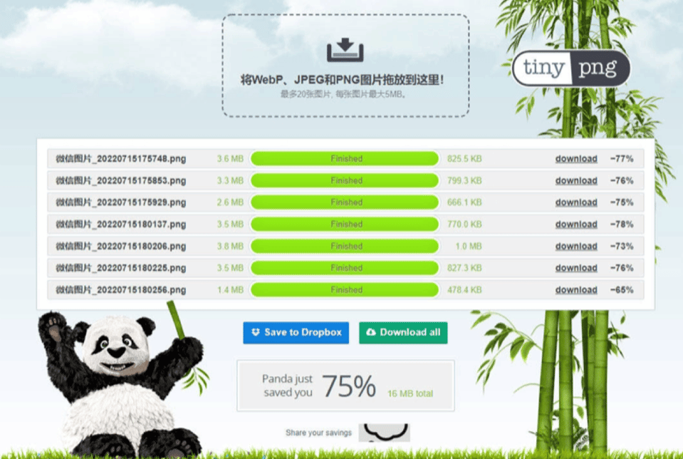 ② 单次可压缩 20 张图片,支持 WEBP、JPEG 和 PNG 格式