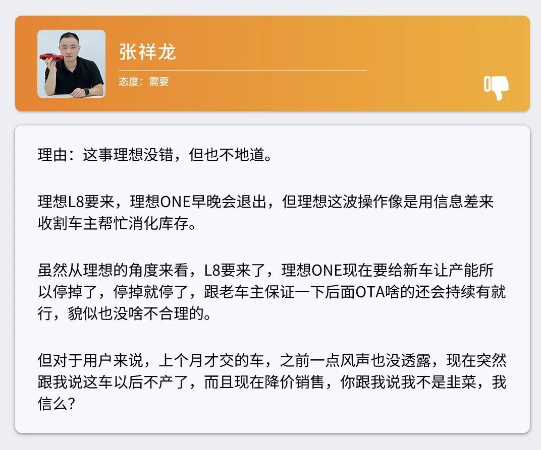 由于换代需求,理想ONE将停止生产并且售价直降2万元。因此理想被车主投诉了。