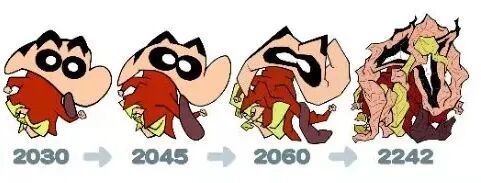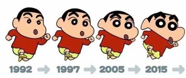 提起小新的成长,不知道你有没有发现即便这个小孩永远红衣黄裤,但他的脸还是越来越有棱角的。
