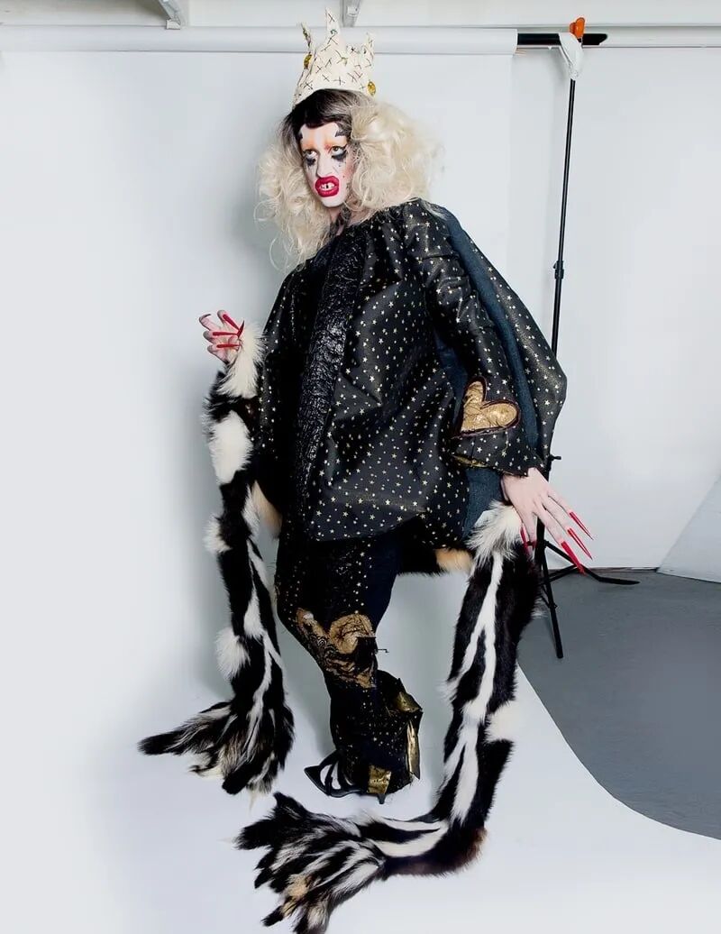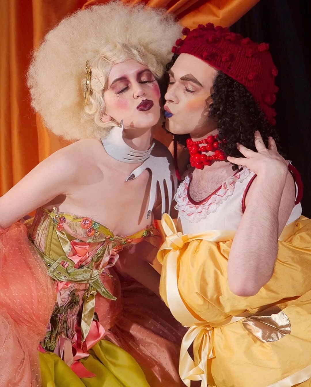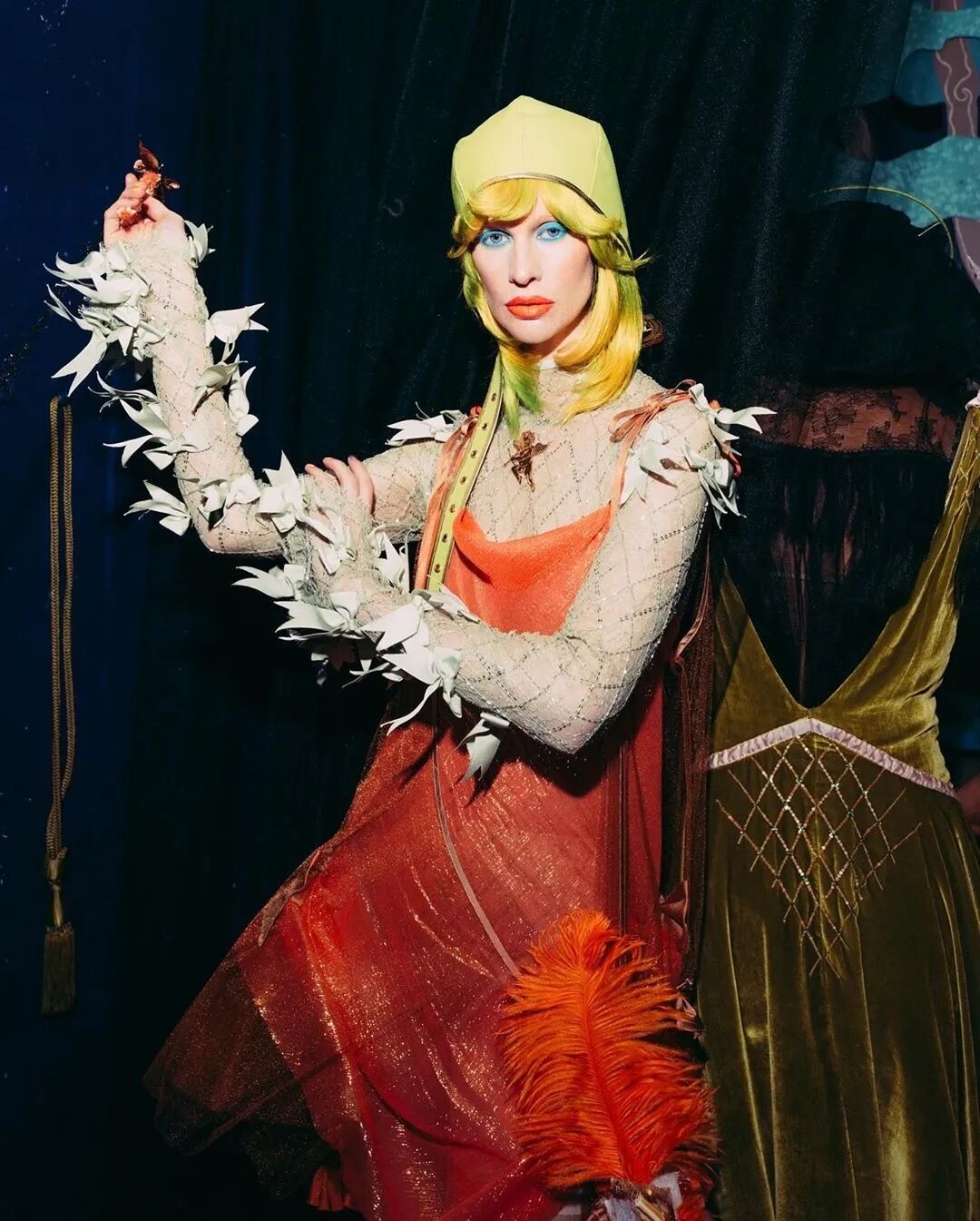 这样极富抓马气质的和服装中带有的戏剧感令人难以忘怀,我们也不得不提一提担任此次联合设计的新锐设计师Jackson Wiederhoeft。