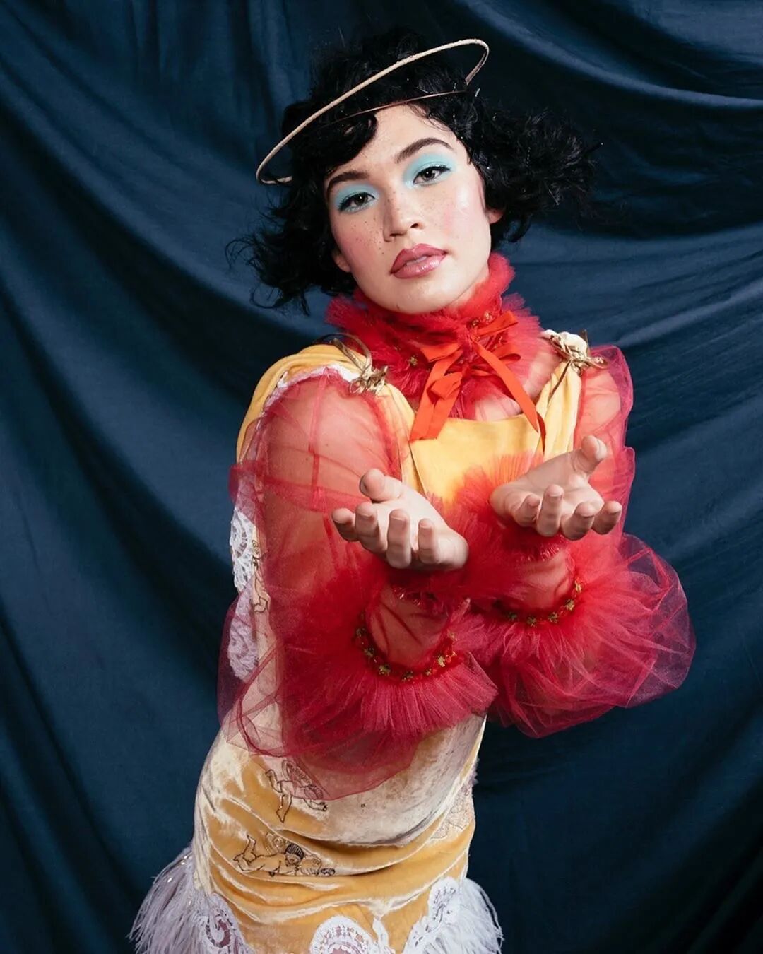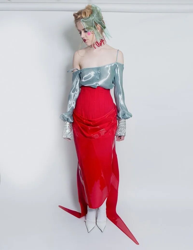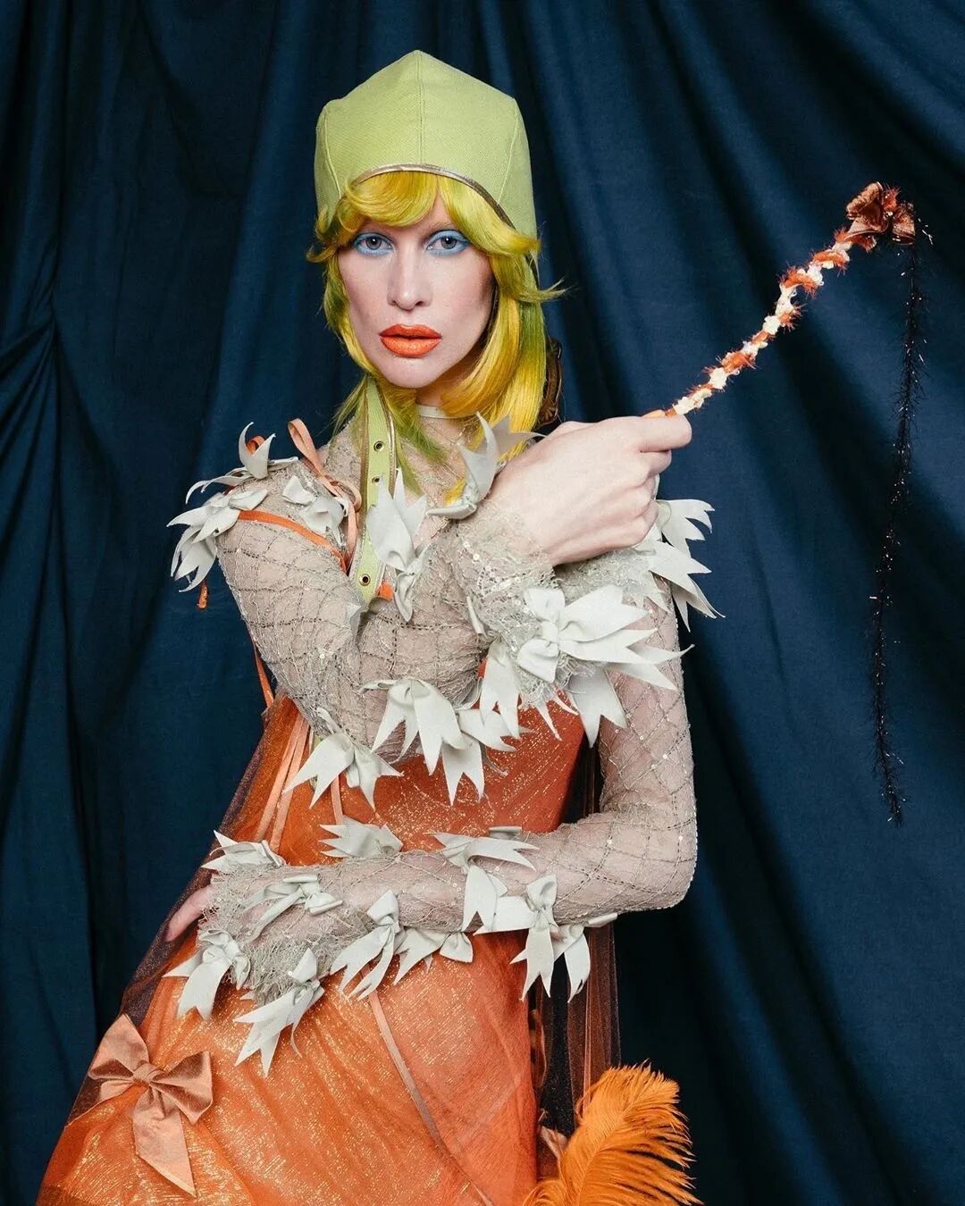 这样极富抓马气质的和服装中带有的戏剧感令人难以忘怀,我们也不得不提一提担任此次联合设计的新锐设计师Jackson Wiederhoeft。
