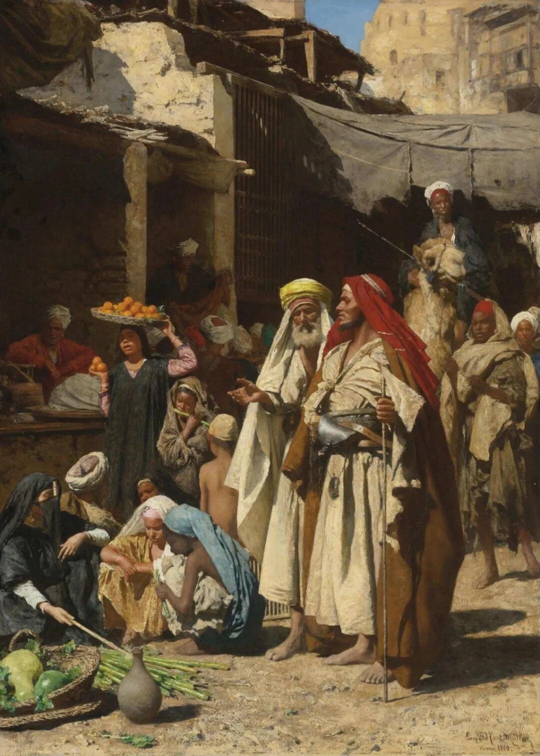 他在东方题材中更多地展示了他的色彩天赋,如《阿拉伯货币兑换商》、《前往麦加休息的朝圣者》、《营地中的贝都因人》、《骆驼市场》、《年轻的科普特妇女》(慕尼黑新绘画馆)。