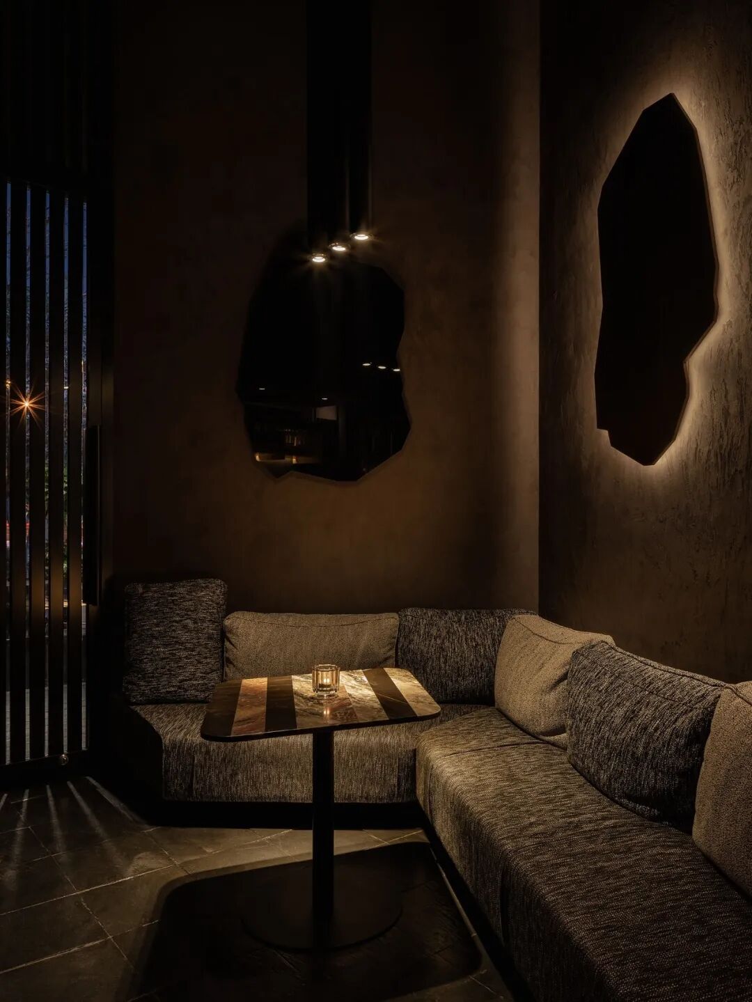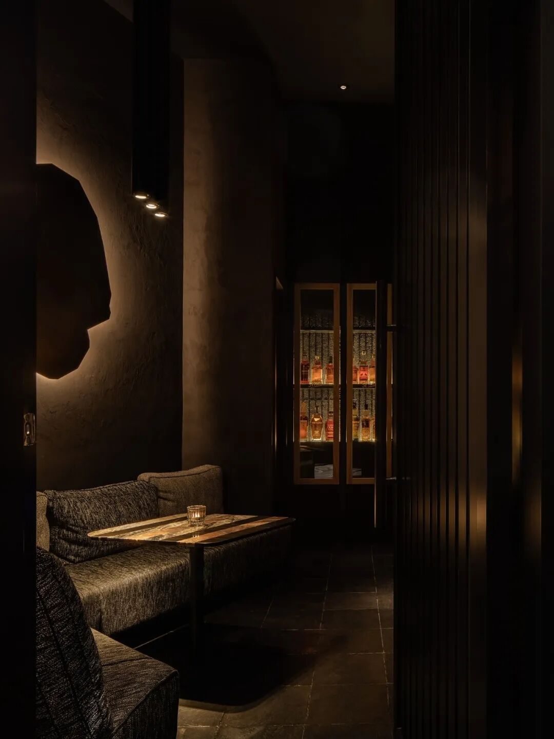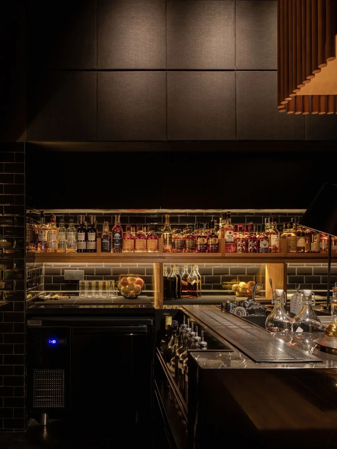 hcreates 与Black Rock上海团队合作,改造了上海热门街区富民路一个不起眼的拐角。整个设计概念源自于威士忌,通过不同纹理、暗色调、焦黑色木材、光滑的大理石花纹和斑驳的灯光展现其风味特征与层次,充满了对比元素:明亮与黑暗、平滑与粗糙、光泽与哑光,创造出一种独特的空间体验。