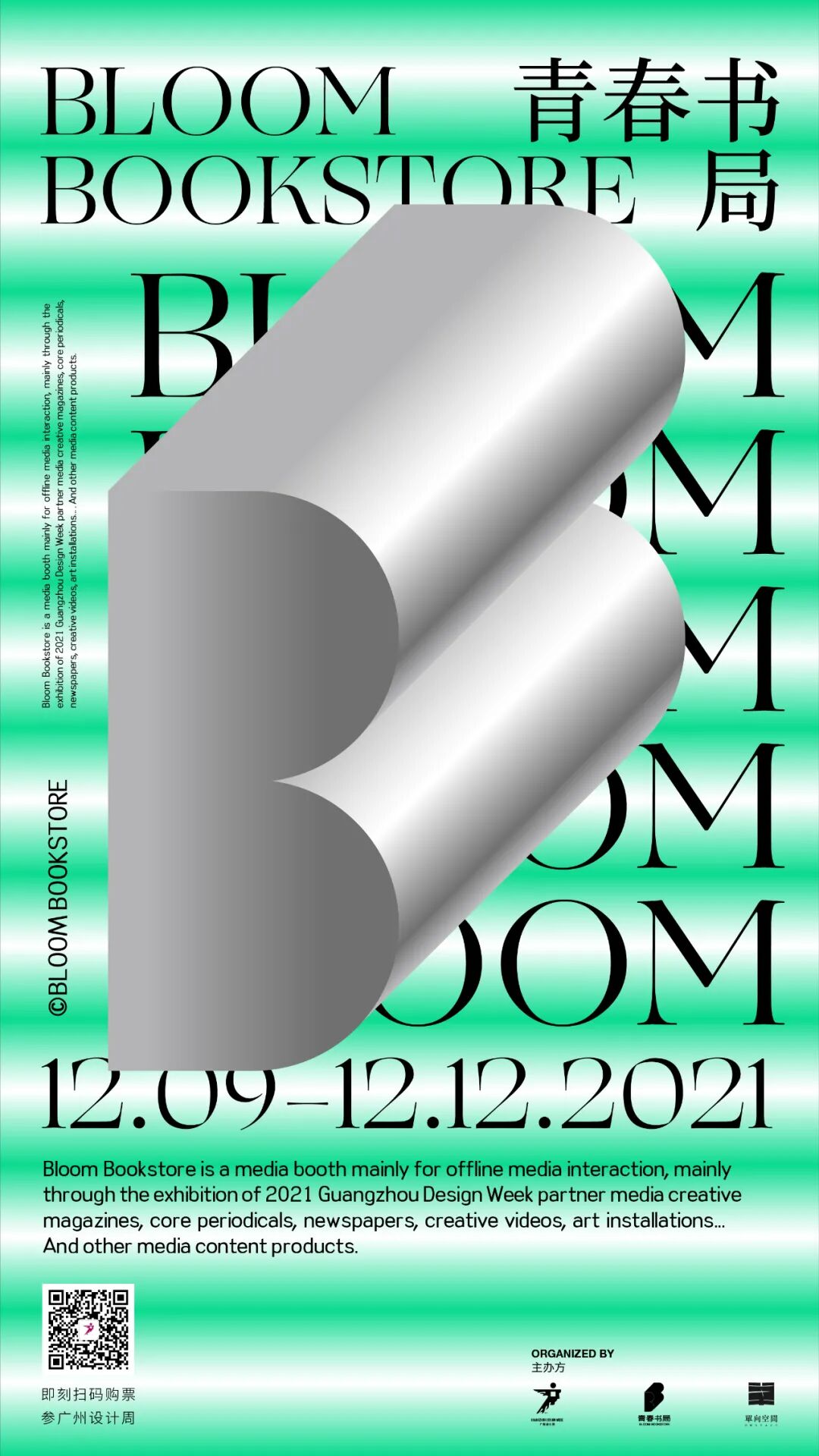 青春书局,由广州设计周与单向空间联合主办发起,是一个以线下媒体互动为主要功能的媒体展位,主要展示2021广州设计周合作媒体的创意杂志、核心期刊、报纸、创意视频、艺术装置等一系列媒体内容产品。同时,它也是广州设计周合作媒体休息区,为媒体朋友采访报道之余提供茶歇等服务。展览通过设计媒体展位结合书店的形式,打破了千篇一律的普通展陈方式,希望创造一个媒介互动的新展示空间。