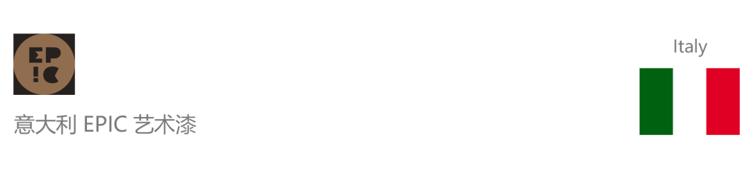 EPIC意大利艺术漆源于1944年,追求安全、环保、无毒、无味,于2017年登入中国市场。每一款艺术漆都有着独特的肌理,丰富的色彩和细腻的纹理设计背后蕴藏着深厚的文化底蕴。