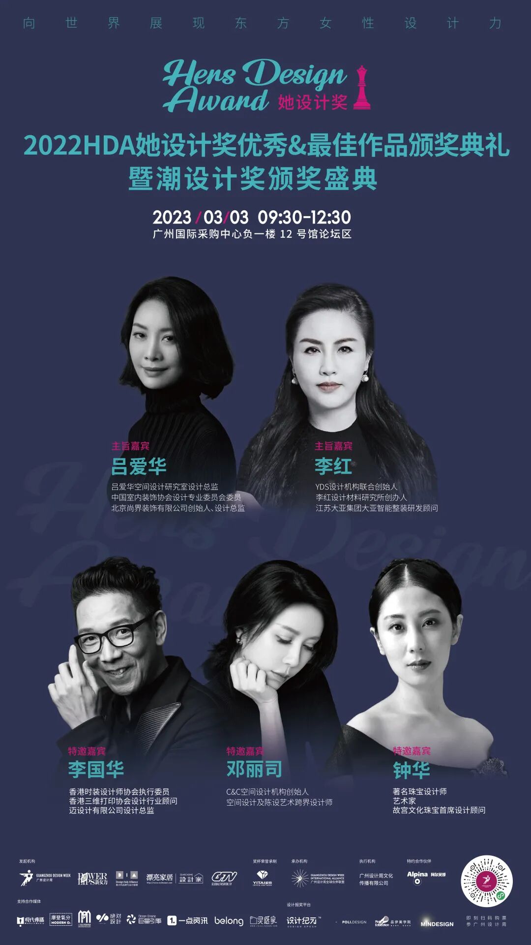 3月3日,她设计奖评审委员会成员C&C空间设计机构创始人邓丽司、迈设计有限公司设计总监李国华、故宫文化珠宝首席设计顾问钟华将莅临现场为2022HDA她设计奖年度优秀&最佳作品颁奖。3月4日,2022HDA她设计奖杰出女性人物颁奖典礼现场为年度特别荣誉“2022她设计奖·杰出女性人物”加冕,期待与您共同见证!