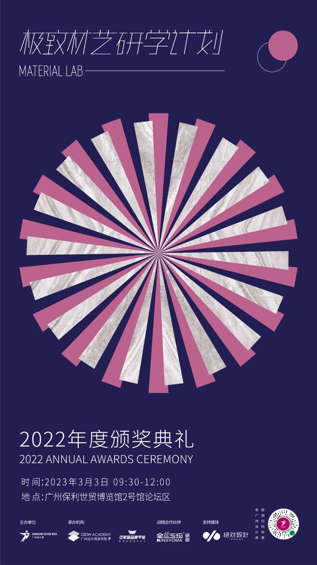 作为“极致材艺研学计划”的重磅收官活动,极致材艺研学计划2022年度颁奖典礼将面向2022年极致材艺研学计划的研学学员公开进行参评,表彰以观念创新带动产业升级发展,为国家创意产业塑造创新发展模式,为中国设计跨越式发展树立“样板工程”的“设计驱动产业升级精英人物”,并现场进行荣誉颁发。