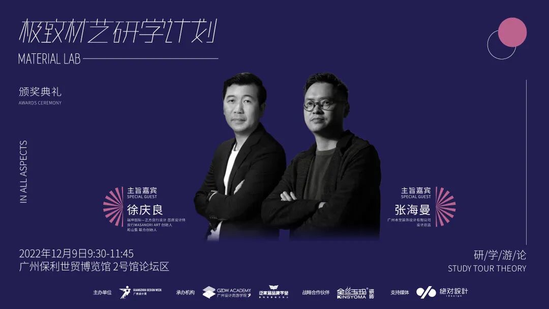 2022极致材艺研学计划颁奖典礼,特别邀请到助力极致材艺研学计划开展的 徐庆良先生以及 张海曼先生出席并开展嘉宾主题演讲,与我们游学的设计师们在现场再次进行对话。