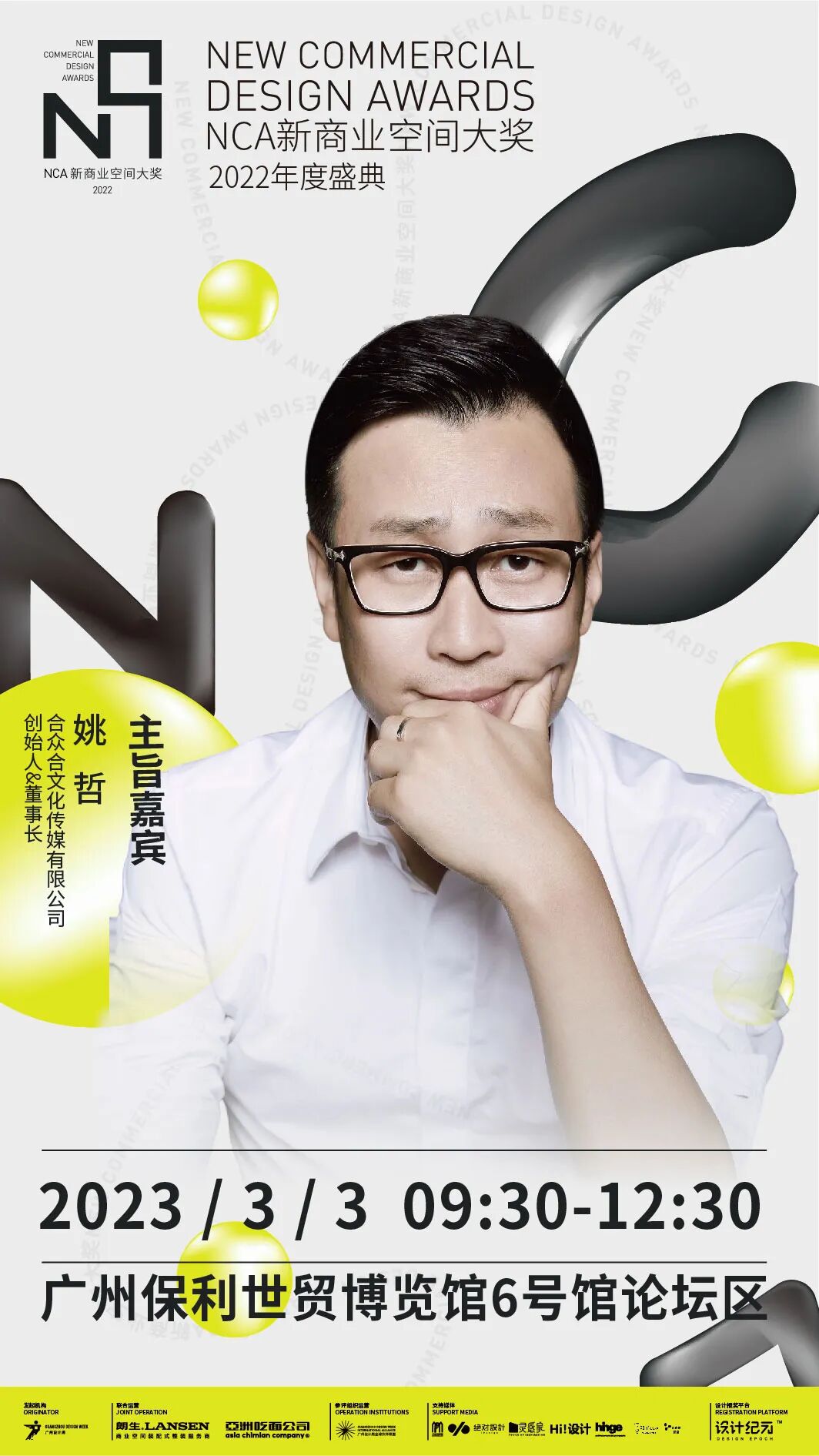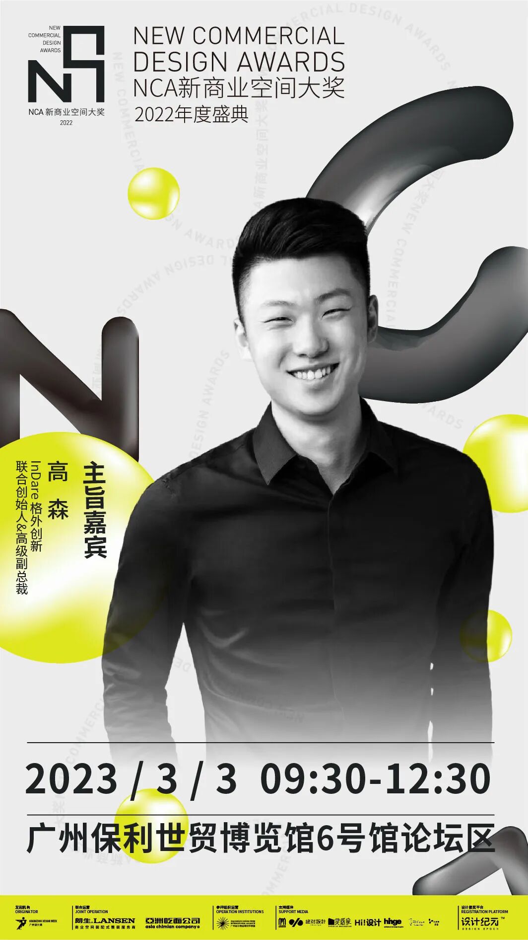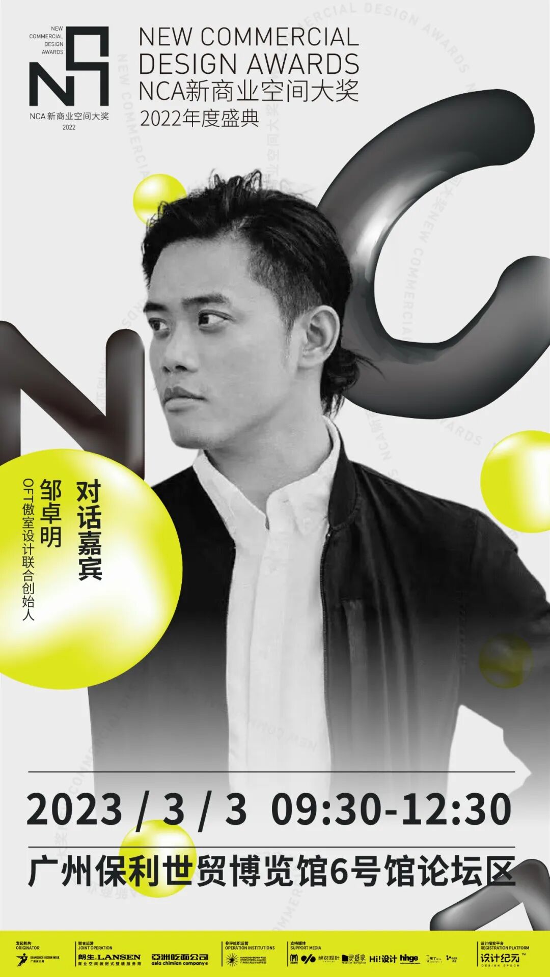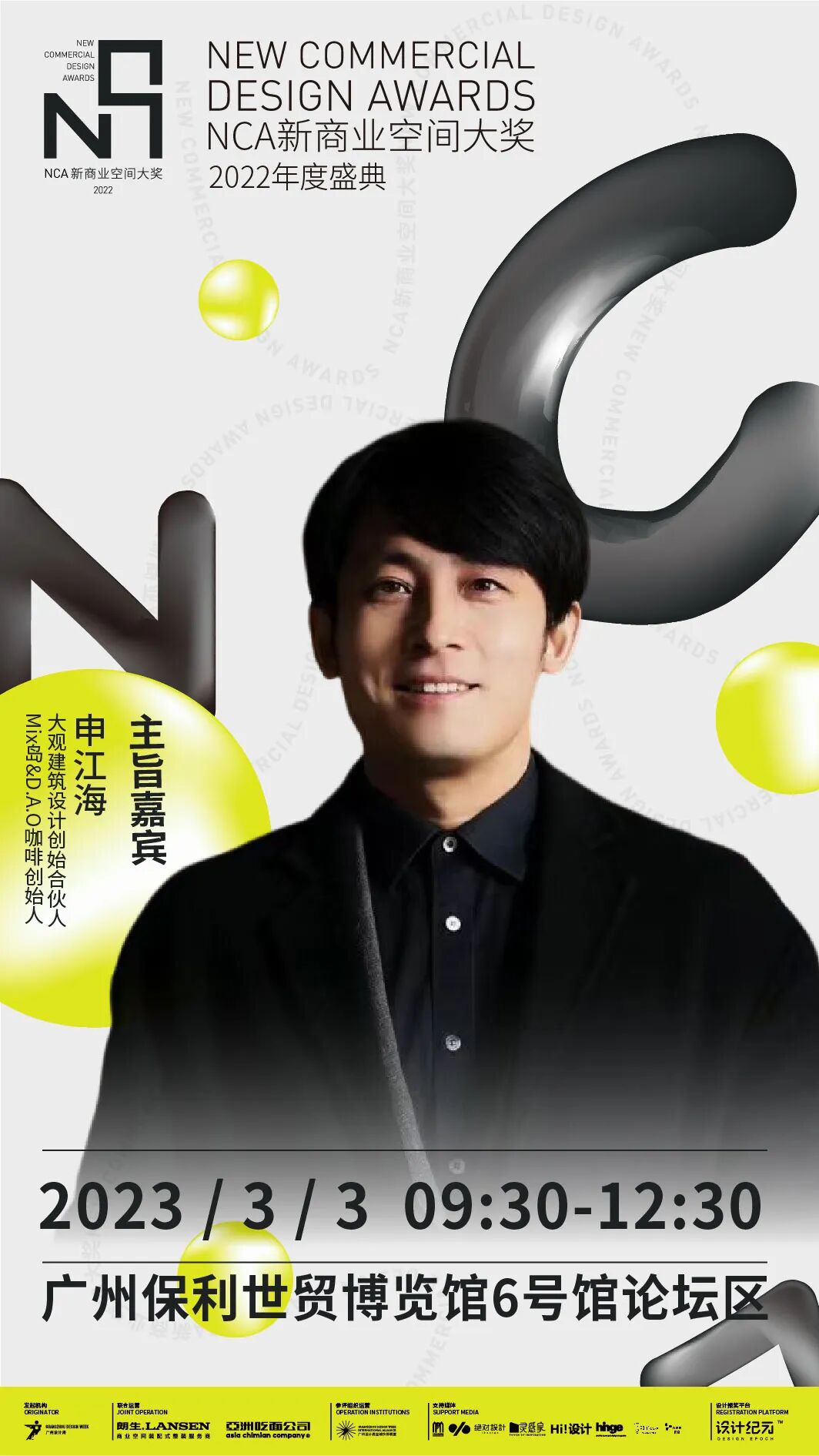 2023年3月3日上午9:30-12:30,「NCA新商业空间大奖 2022年度颁奖典礼」将于广州·保利世贸博览馆3楼 6号馆论坛区隆重举办,大会现场将邀请多位新商业品牌运营专家及新商业空间设计师莅临,畅谈关于新商业空间的设计思想,共同思考新消费品牌的未来动态。