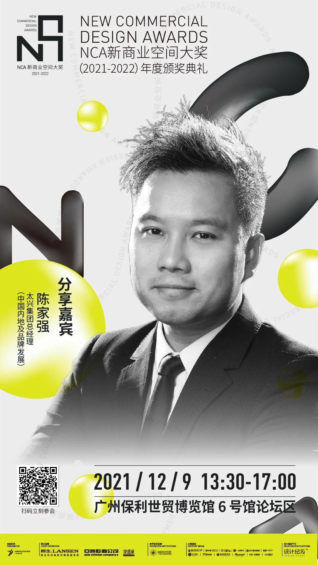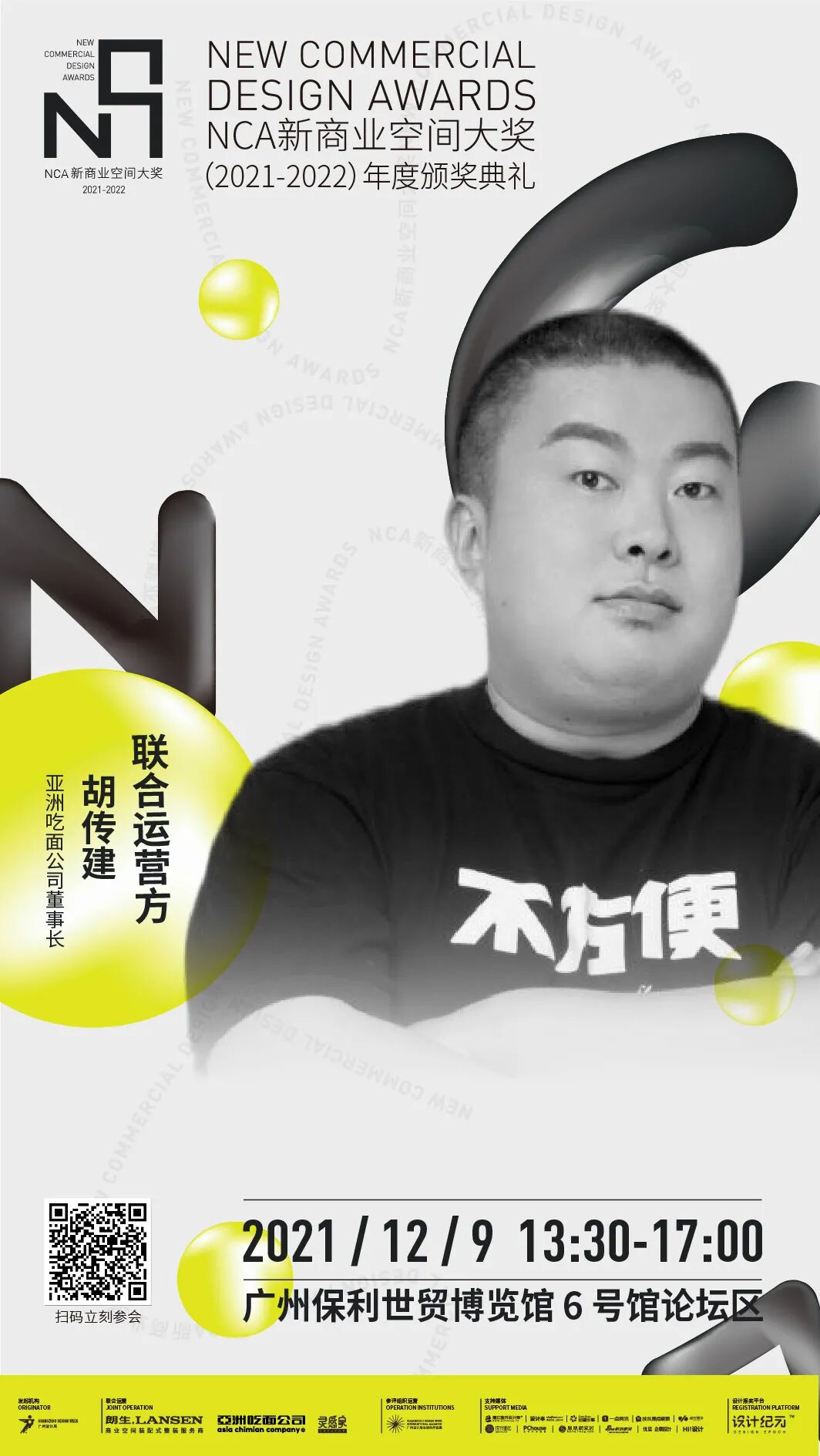 本次我们将邀请NCA新商业空间大奖的发起单位 代表 广州设计周CEO 贺文广 先生以及联合运营方朗生LANSEN董事长 凌开舟 先生、亚洲吃面公司董事长 胡传建 先生前来2021 年度 NCA 新商业空间大奖颁奖典礼参与致辞,着力盘点年度新商业空间设计,搭建新商业市场新模式,展望未来新商业趋势,共同助力商业空间在颜值和内容时代的品牌价值提升和体验升级。
