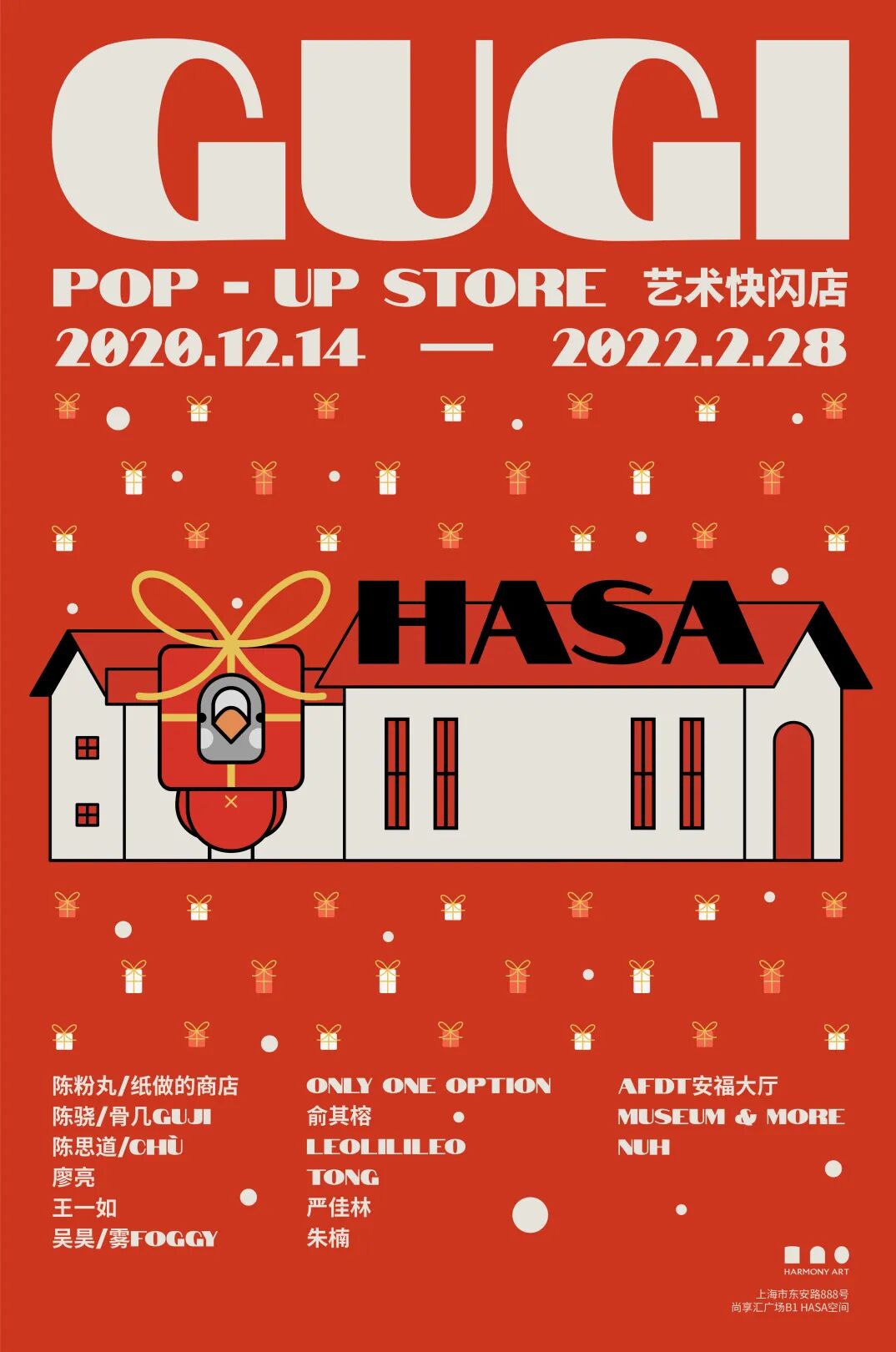 作为HA的代言人,GUGI夫妇此次带着全新的圣诞形象跃然于大家亲手印刷的T恤上,艺术社区的居民们通过不同的色彩组合诠释着自己心中的GUGI。同时,GUGI限量版T恤也将登陆目前已经开幕的GUGI限时商店,到时候记得来带属于你的GUGI回家哦!