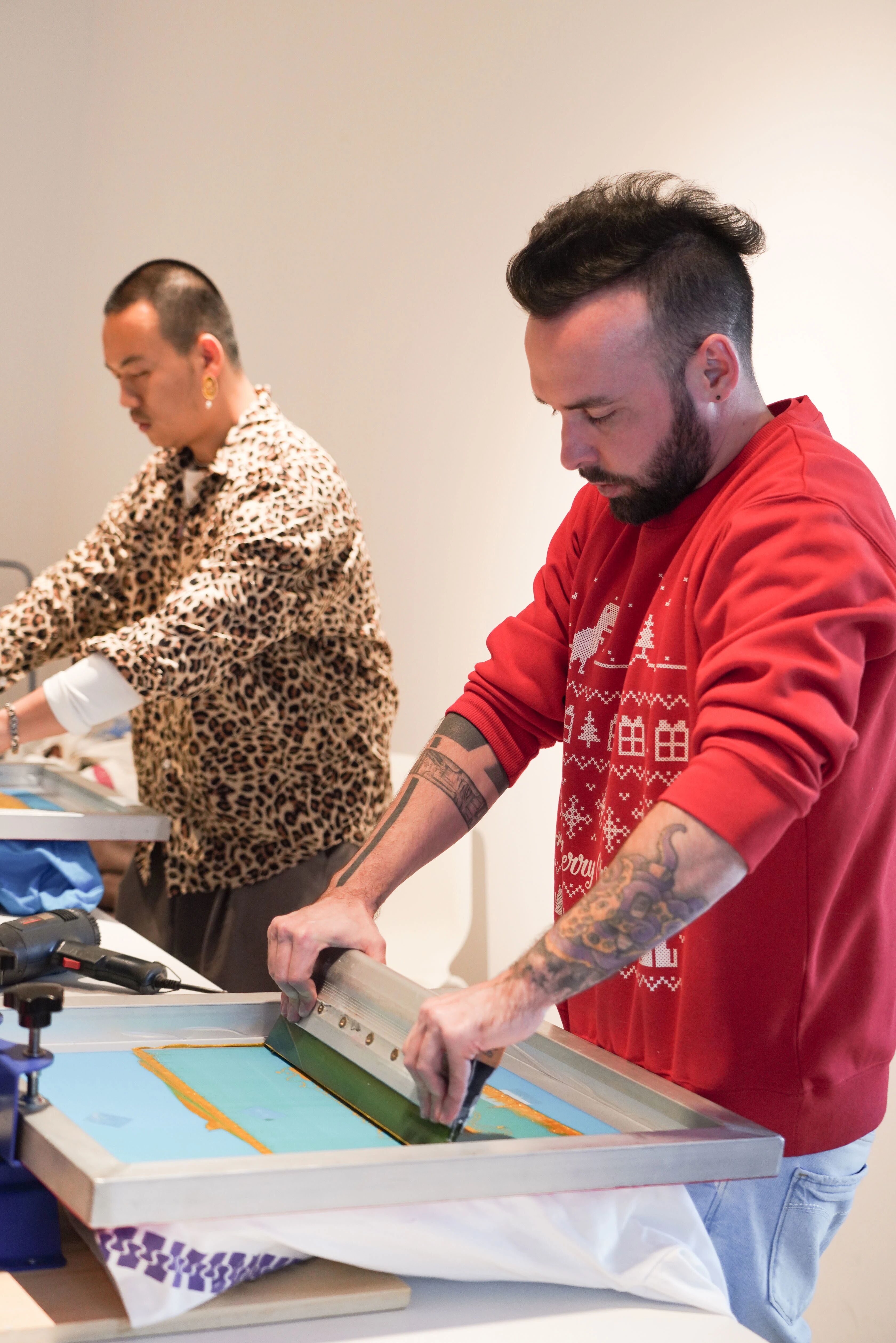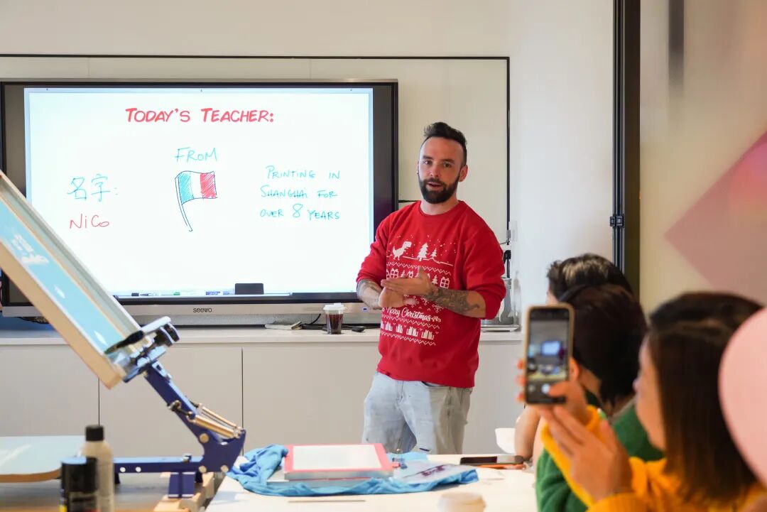 丝网印刷活动老师、Wasavy's Print Shop主理人Nico身着颇具圣诞氛围的服装来到活动现场。