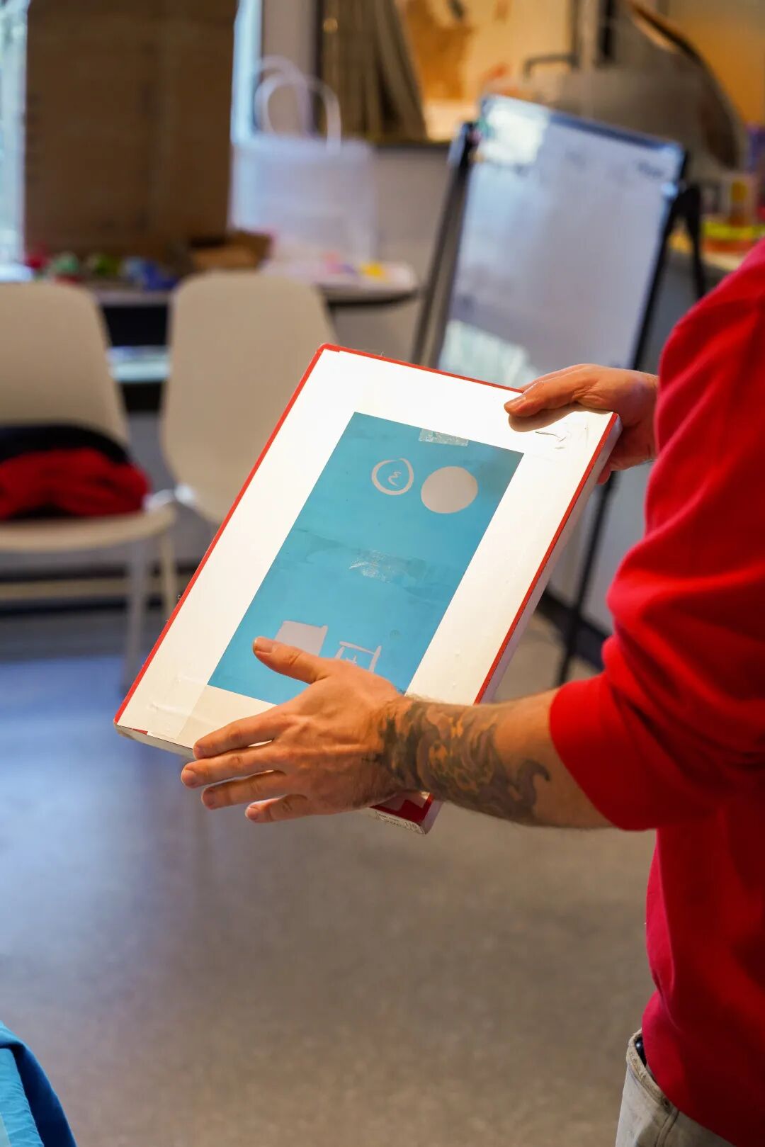 Nico老师首先向大家介绍了丝网印刷的基础理论,分享了丝网印刷的历史,如何制版、晒版,印刷小技巧等。随后大家在Nico老师带领下动手印刷,看似轻松的刷料过程,在实操中发现比想象的更需要技巧。