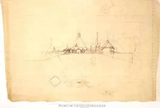 赖特设计的是一个带有圆锥形屋顶的圆形结构,如果不是1894年的经济萧条,这个设计本来是可以建成的。