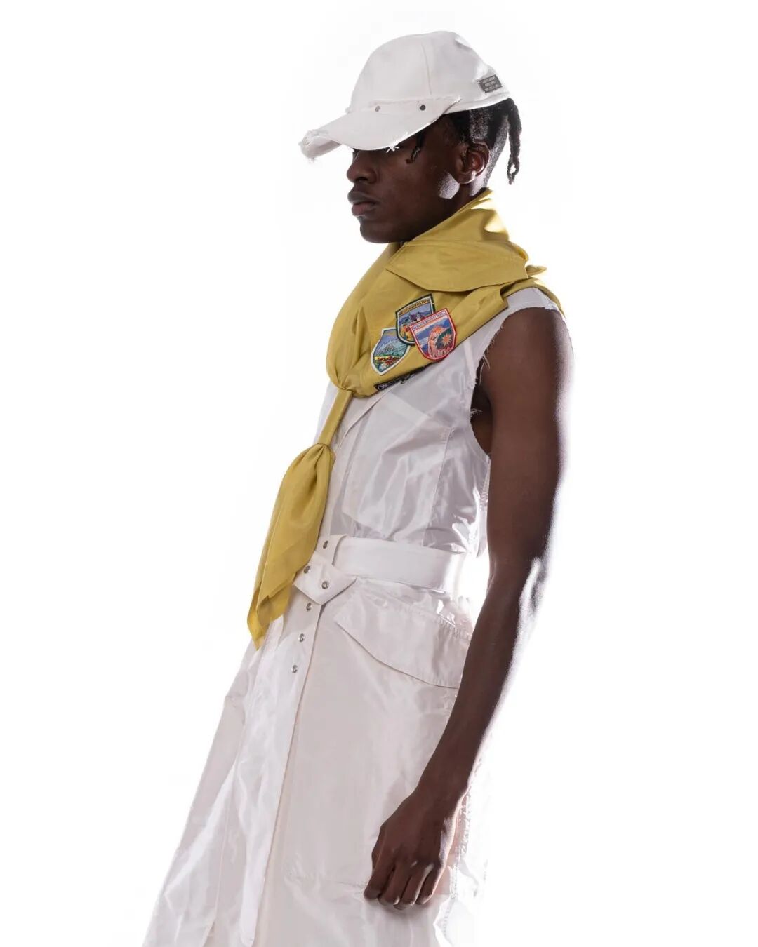 他借鉴了他的祖父母裁缝作坊的工艺传统,并再利用了旧汽车防水布等旧材料进行设计,在系列中融入一种与家乡的联系感。
