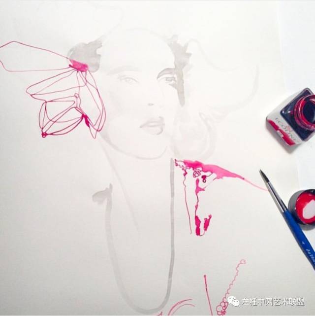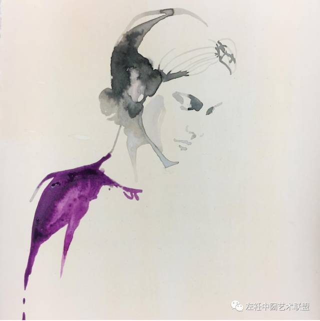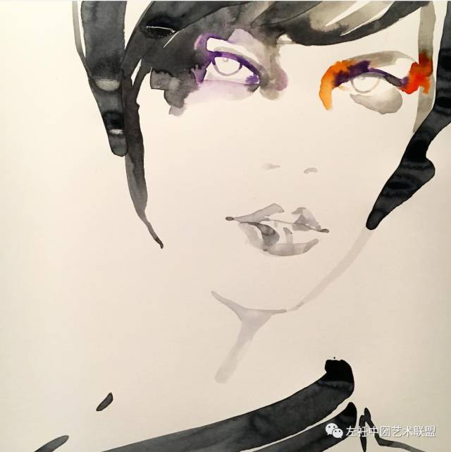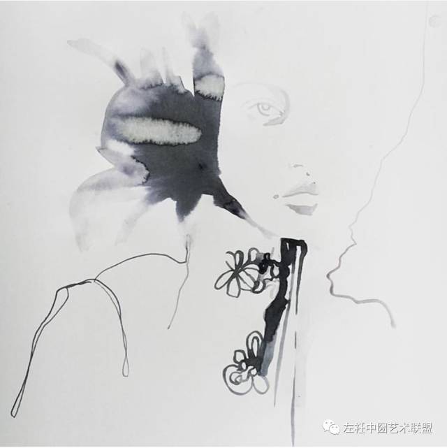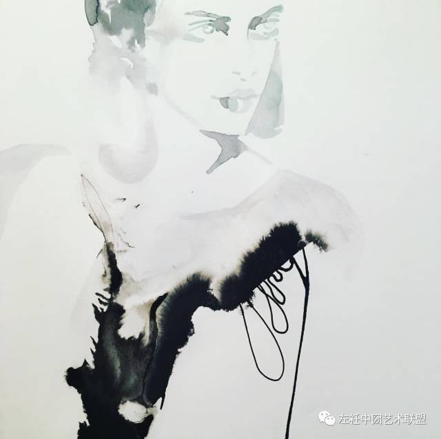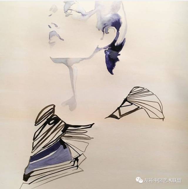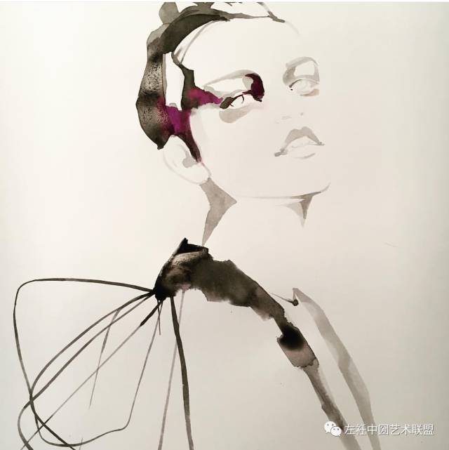 LULU擅长在时装插画里带有现代诗意美学,在水彩画的基础上,控制干湿比例。对画面的上色面积做出分析之后,进行色彩上的渲染,如墨水滴入水中而泛起的涟漪。