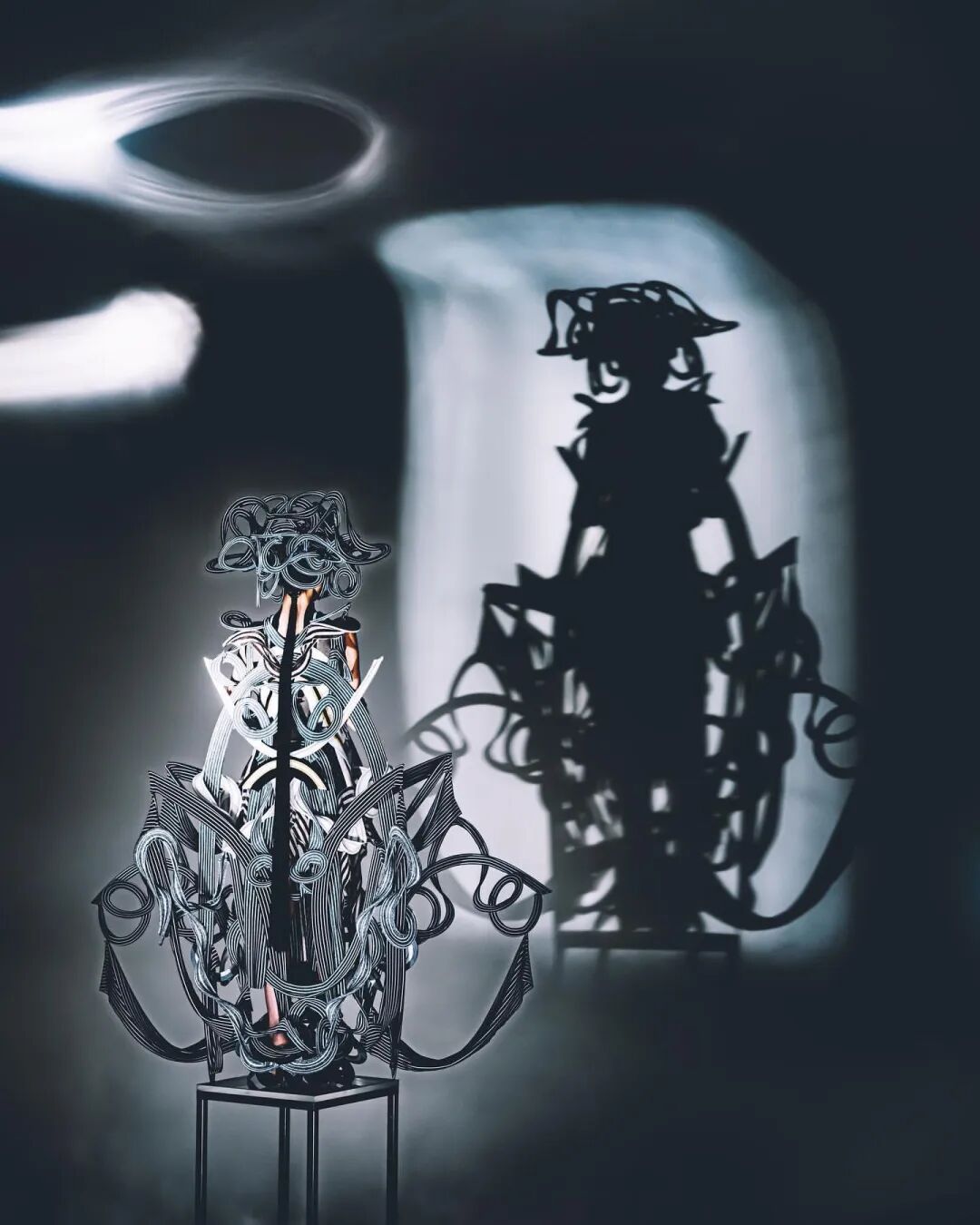 “也许他们的皮肤没有被覆盖,在某些地方可以看到,看起来就像一块有洞的织物。”Ryunosuke Okazaki使用穿孔织物和镂空塑造出一个开放的空间,而作品成为他笔下的缩影,需要人们通过图形以及维度的方向解读。