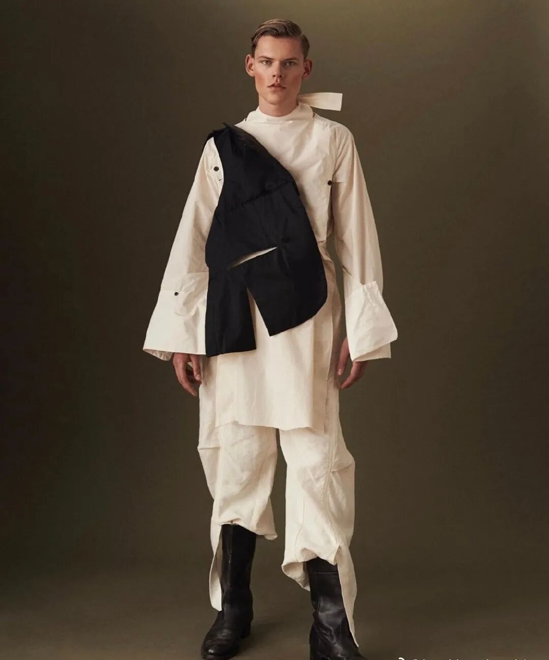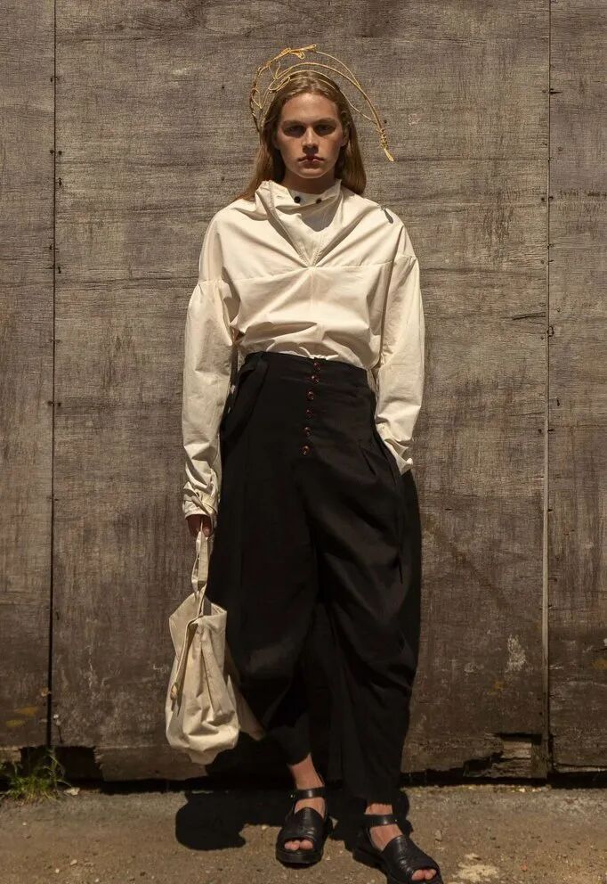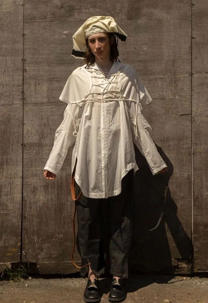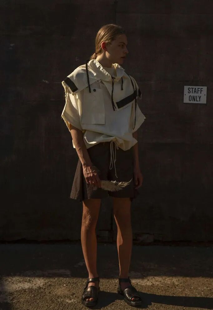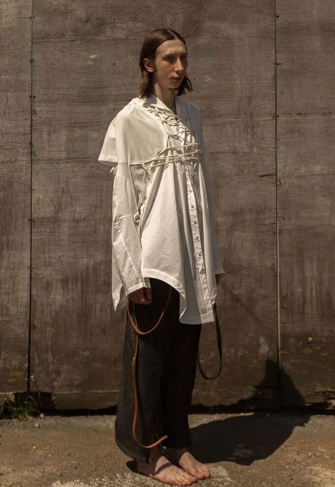 以“第一章节”为概念,映射事物被包裹的多面性,和更接近原始性的身份概念——既暴露又隐藏的形象,而服装作品的塑造可能性及其产生的变化形式,使持有者能够雕塑自己的盔甲。