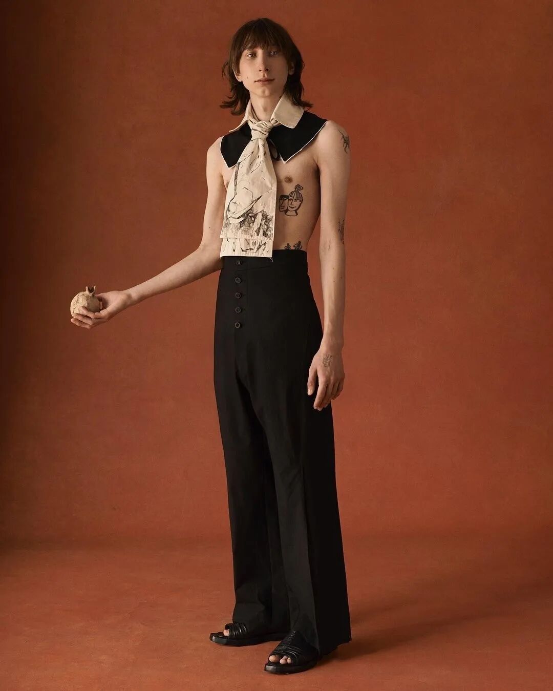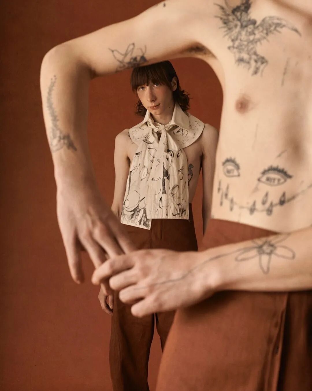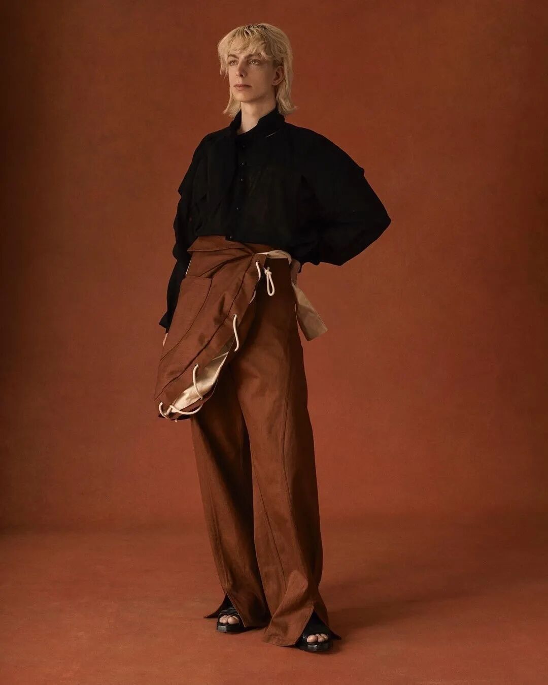 以“第一章节”为概念,映射事物被包裹的多面性,和更接近原始性的身份概念——既暴露又隐藏的形象,而服装作品的塑造可能性及其产生的变化形式,使持有者能够雕塑自己的盔甲。