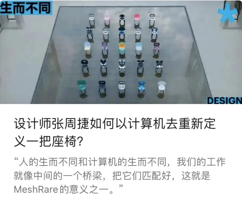 2022年10月28日,由独立设计师、数字艺术家张周捷主创的实验项目「MeshRare」以「我们,生而不同」为原则完成初亮相
