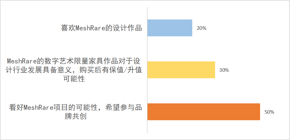 可以说,这样的调查结果,比较符合我们对当下较为精确用户客群的印象。事实上,我们也希望在品牌初期,更多朋友在购买MeshRare的作品时,是出于相信长远的品牌价值,并对联合共创抱有期待。