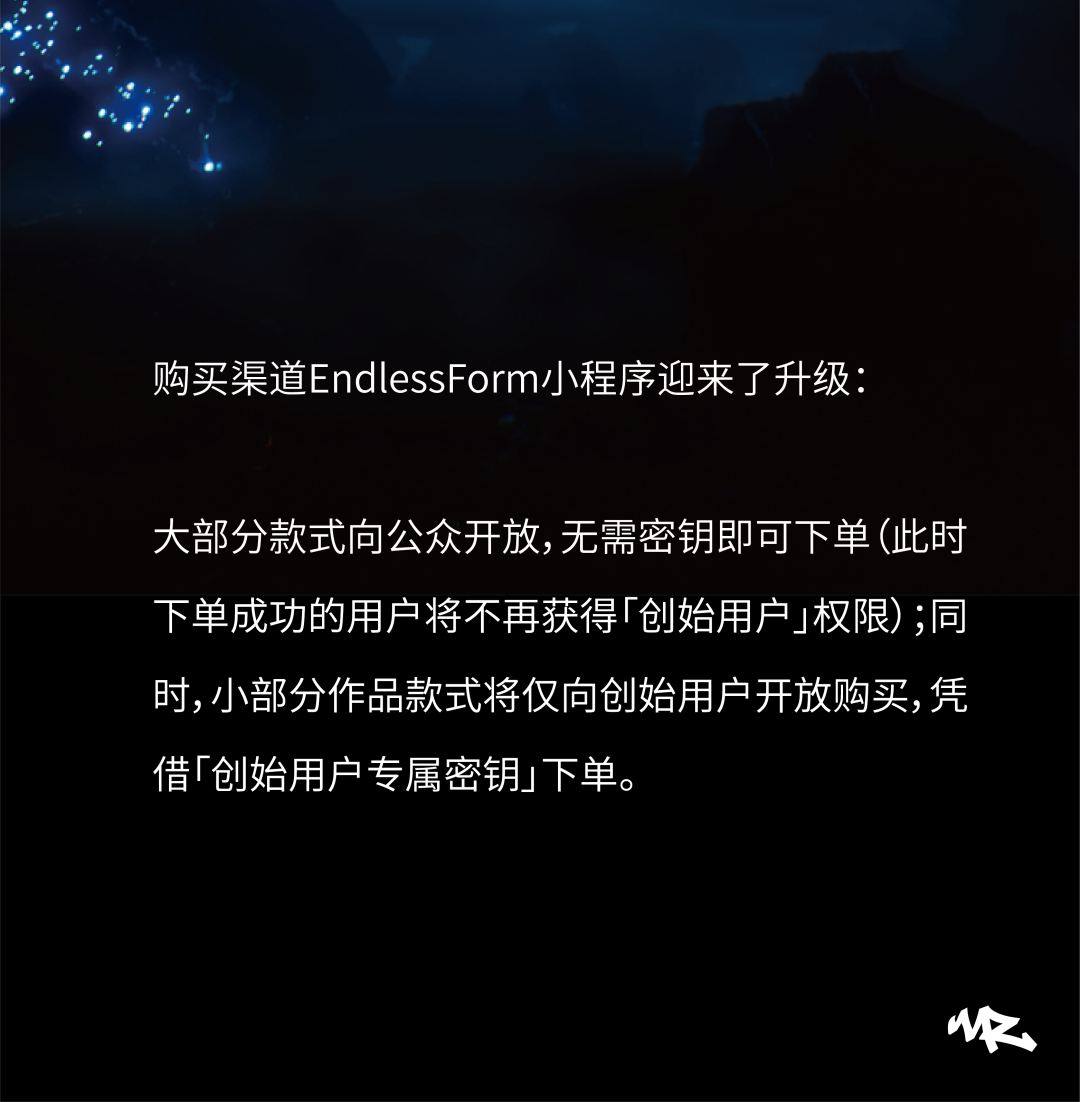 2022年11月8日,EndlessForm小程序正式开放,同期针对大众的「领密钥选购限量数字椅」端口也如愿开启