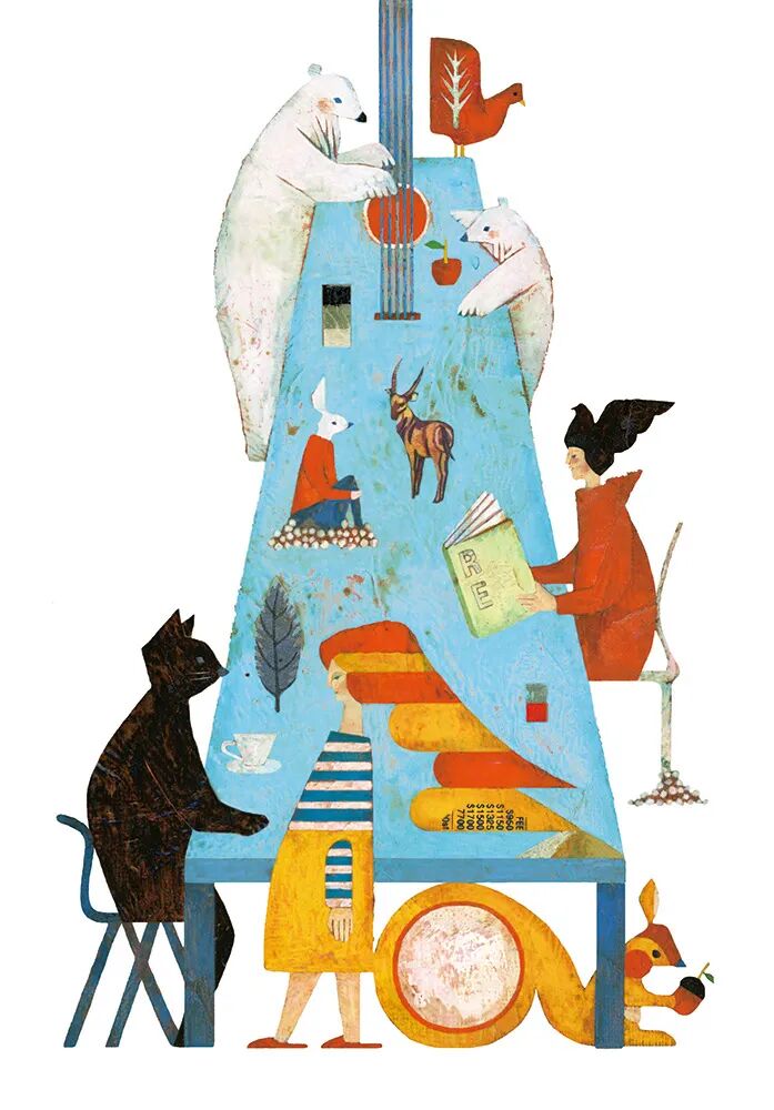 1967年生于大阪,1989年毕业于大阪艺术大学平面设计专业,在佐藤邦雄的SPOON公司学习后,开始成为自由插画师,2005年移至东京工作和生活,目前在东京东中野和德岛两处设立办公地点。插图、装饰画、广告、CD包装、绘本、产品设计与制作都是他日常工作中的内容,同时,他还主理了一个设计师家纺品牌——十布 TENP(https://tenp10.com)。