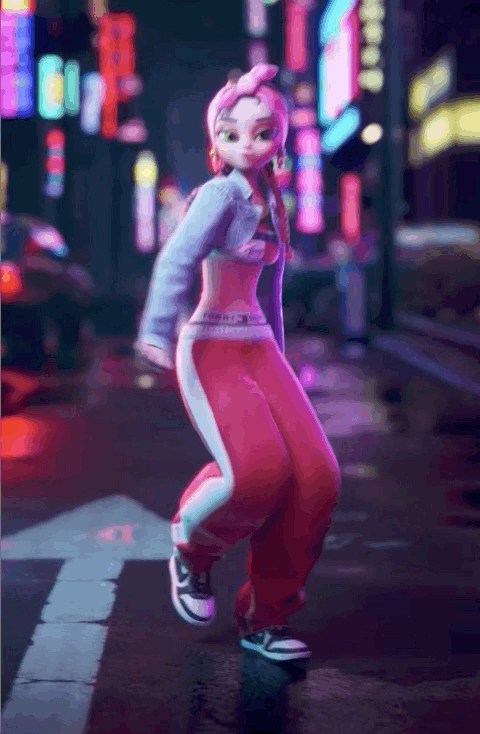 在她的舞蹈视频中充斥着当下的流行元素。将 K-pop 歌舞以赛博朋克风和充满未来感的视觉效果呈现了出来。