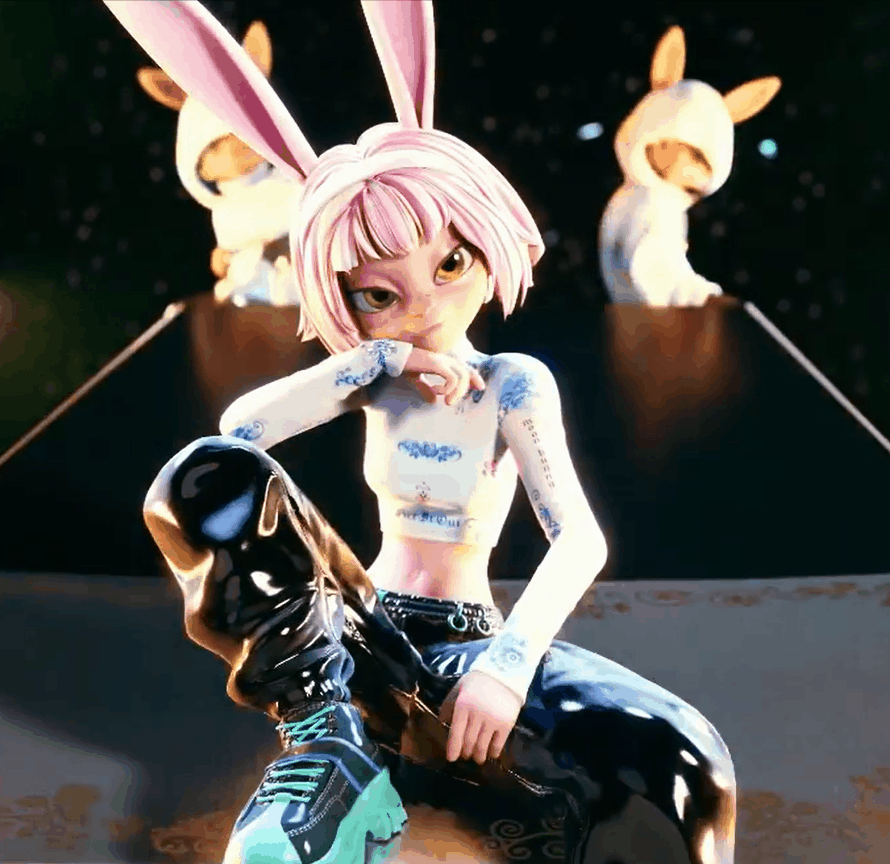 APOKI 的职业身份是一个虚拟 K-pop 歌手,她的自我介绍是——“生活在太空中的某个地方的兔子”,来自与我们不同的另一个虚拟世界。