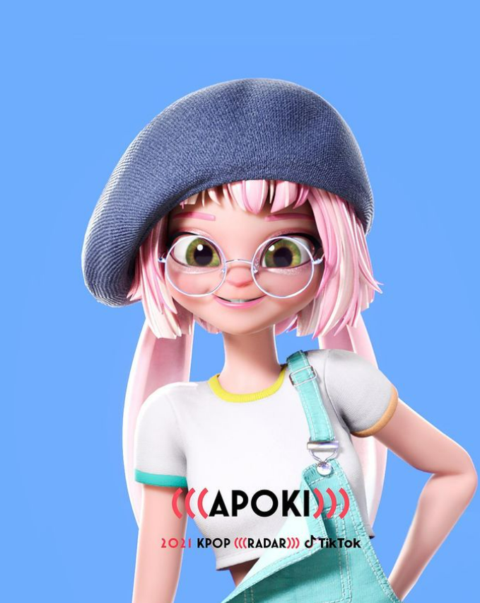 2021 年 2 月,APOKI 正式出道。之后又发行了三首单曲和两首日文版歌曲,这位甜酷的“兔子”虚拟歌手凭借她可爱的外貌和迷人的舞蹈及嗓音吸引了众多 M、Z 世代的粉丝,不仅在韩国和日本,并且在美国、巴西、印度尼西亚、菲律宾、泰国、墨西哥等地都大受网友欢迎。