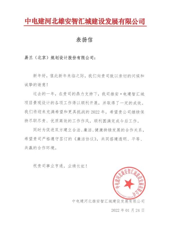 2022年是智汇城项目建设至关重要的一年,易兰团队将以更加主动的姿态、昂扬的斗志投入至项目各项工作中,确保方案落地效果,塑造优质景观环境,严格落实中电建公司对于项目设计的各项要求,勠力同心,再接再厉,保障“630、930、1230”等重大节点任务能圆满完成,使智汇城项目尽快呈现出美好面貌,为打造雄安新区容东片区的城市形象贡献易兰力量!