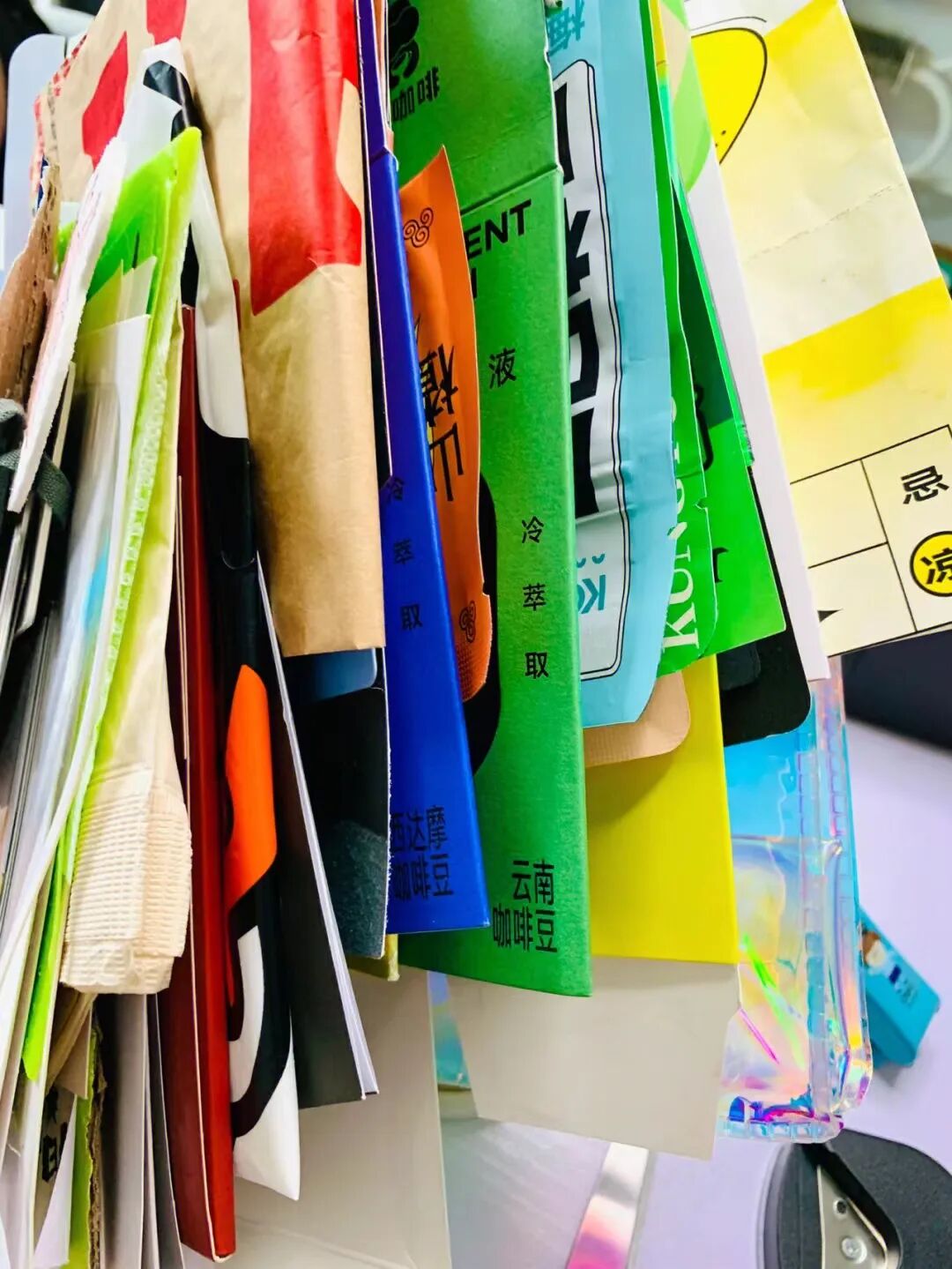 现在我主要收集袋子,杯套,杯子为主,好看的包装也会收集一些,大概积累了两大箱,但是在我们这个圈子里,我这些只是冰山一角,我身边还有很多大佬,来自我加入的一个收集爱好群。进群以后,我才发现跟自己相同爱好的人挺多的,大家也不全是设计师,来自全国各地,收集各种意想不到的东西,什么都有,杯套、纸袋是基础的,还有人收集奶茶的吸管、肯德基/麦当劳的番茄酱包装。谁发现哪个品牌有包装更新,都会及时发在群里边儿交流。