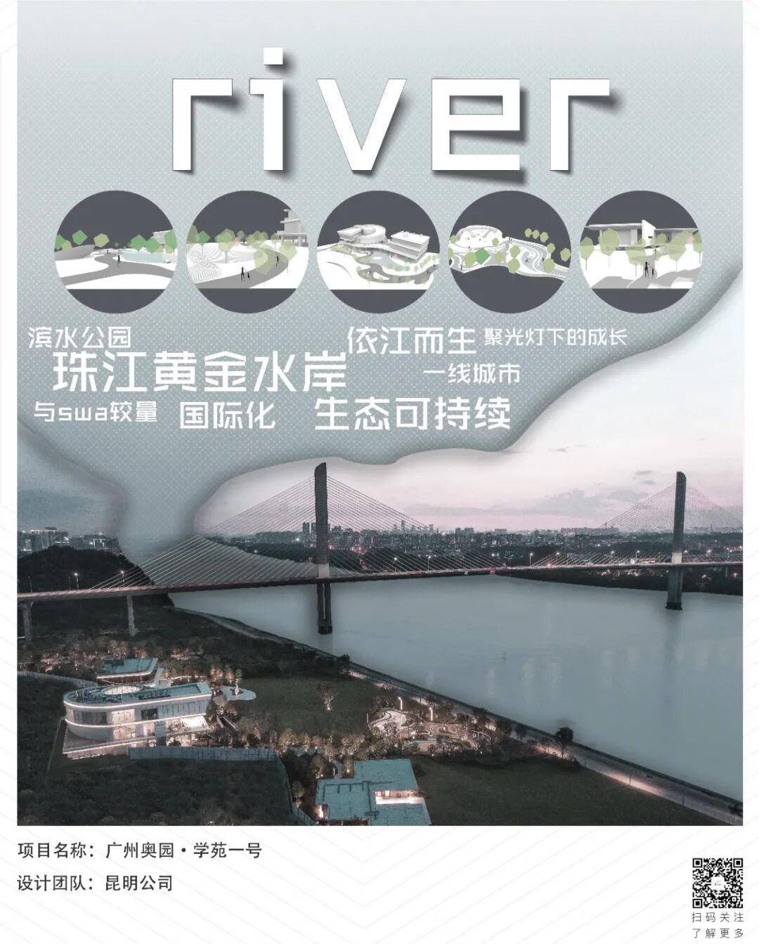设计团队到现场踏勘的时候,叹服于周边深厚的自然人文的城市格局。场地北侧不到100米就是蜿蜒向东的珠江,隔江相望便是巍巍学府并立的大学城。4万㎡的设计范围是超尺度的存在,如何最优化去利用城市格局及现场条件,我们对场地的特性做了多个维度与角度的探讨。在后疫情时代,人们应该更多的去思考自己和环境之间的更多融合与链接。在各种首开区景观在殚精竭虑的考虑用各种网红构筑去吸引人眼球的当下,我们选择回归景观本身,去叩问景观本身带给人的意义,为珠江及人民带来一抹生态绿色的自由开放空间。