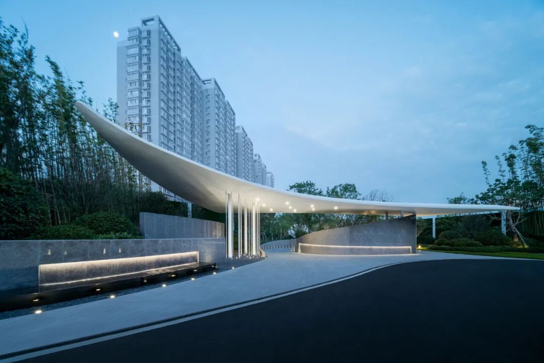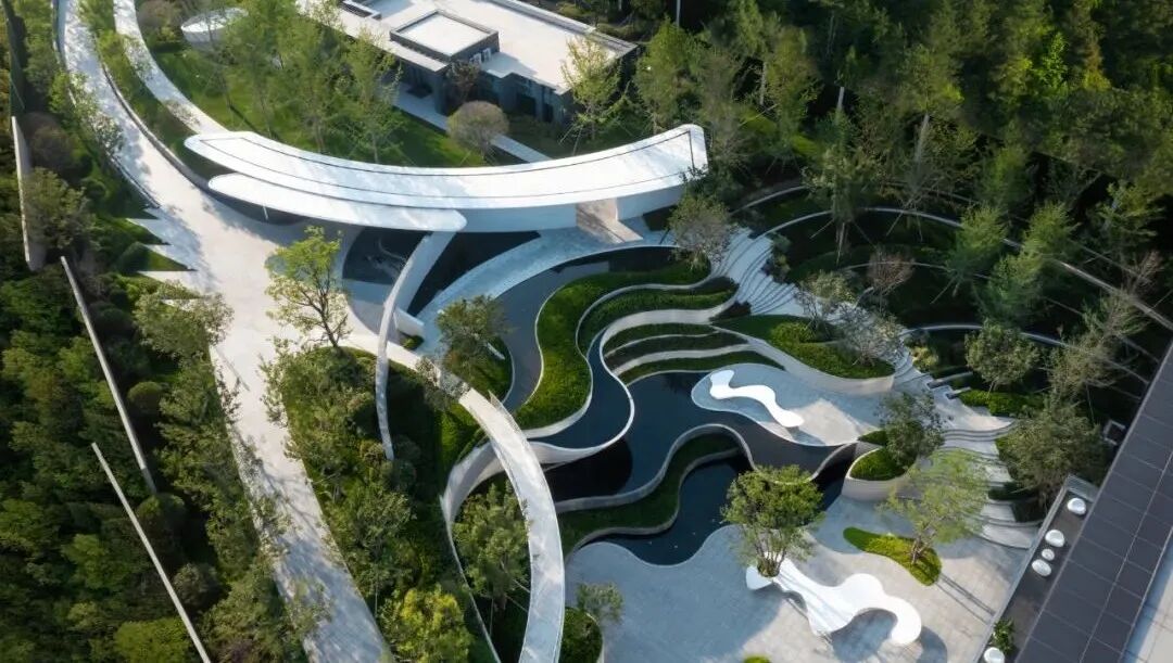 景观调性:以现代材料与风格再现精致生活空间,从成都特色竹编艺术以及自然形态中提炼出独特的文化符号。