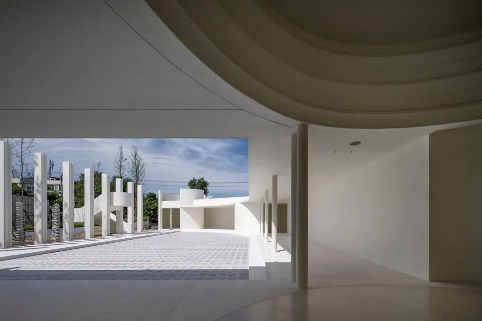 节点空间则基于相邻的立柱创造出弧形的墙体。