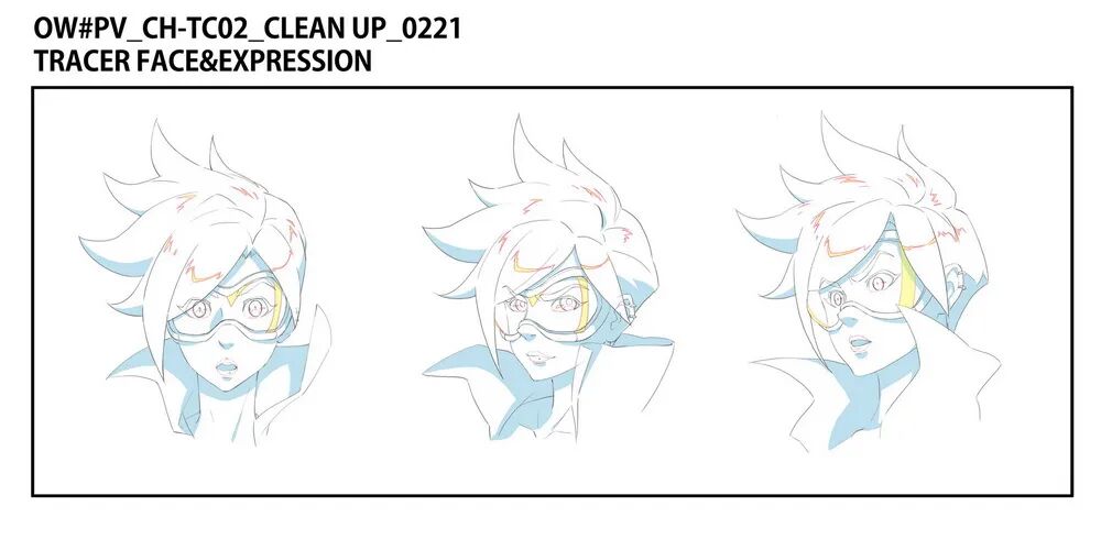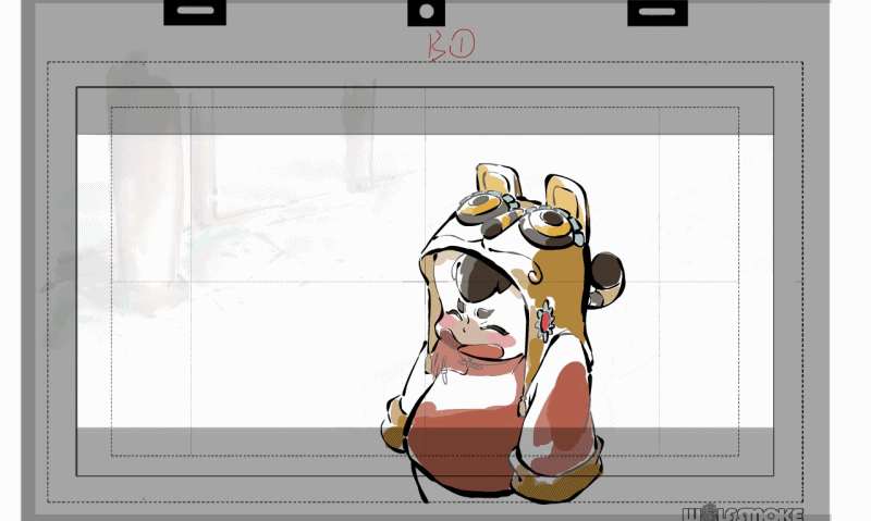 分色参考,这个步骤是普通动画没有的,在这个步骤中,美术导演会根据已有的动画以及构图,根据自己的理解来指定最终线条的粗细、色块的大小和位置,以及需要留白的部分。