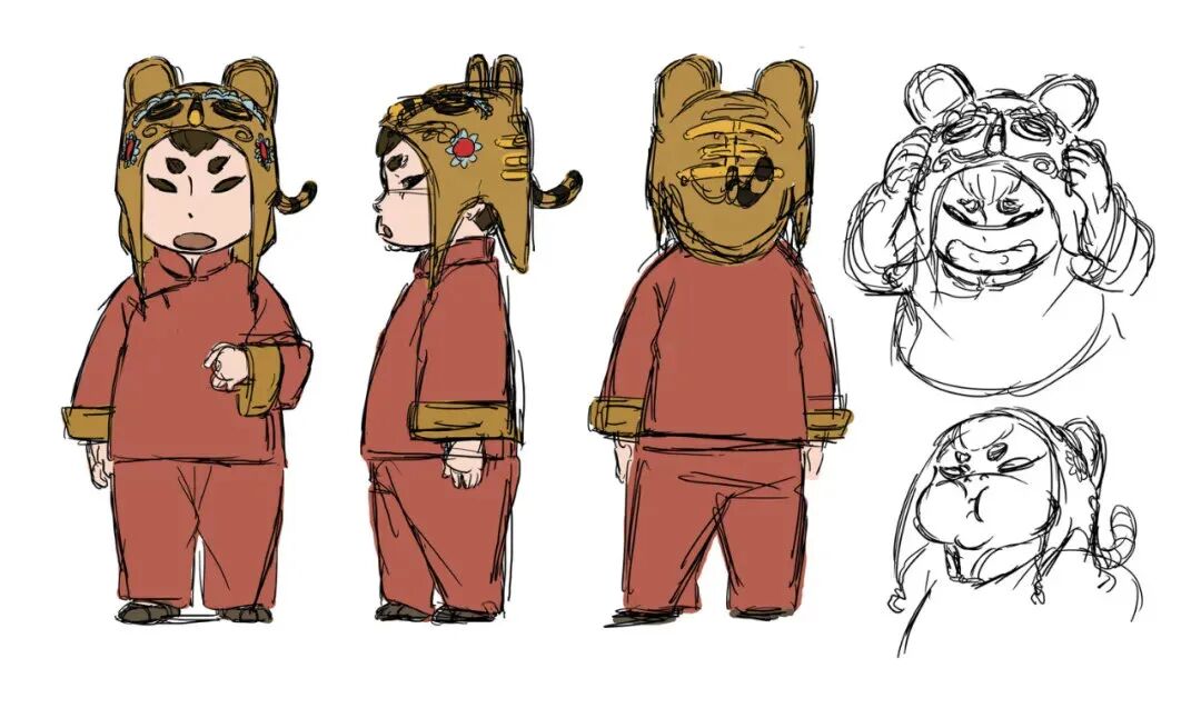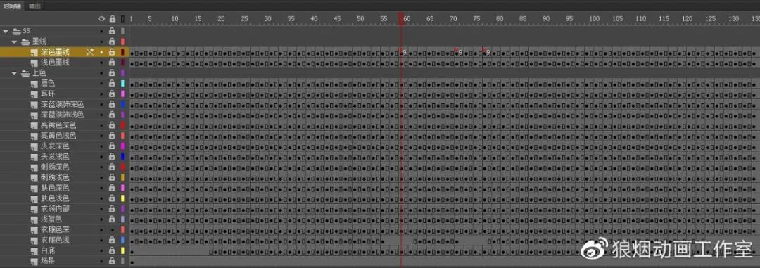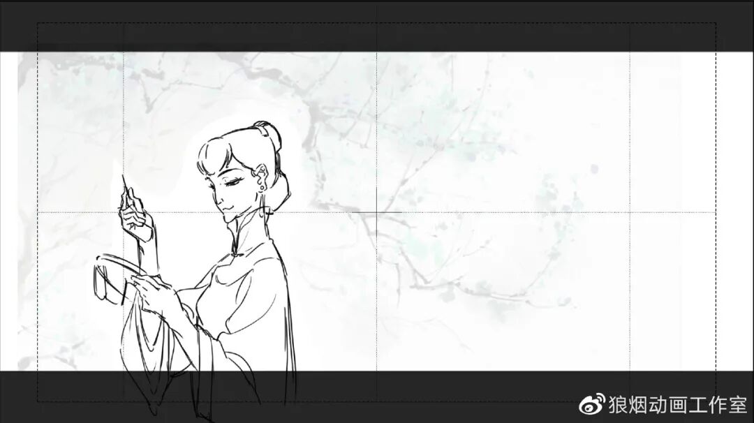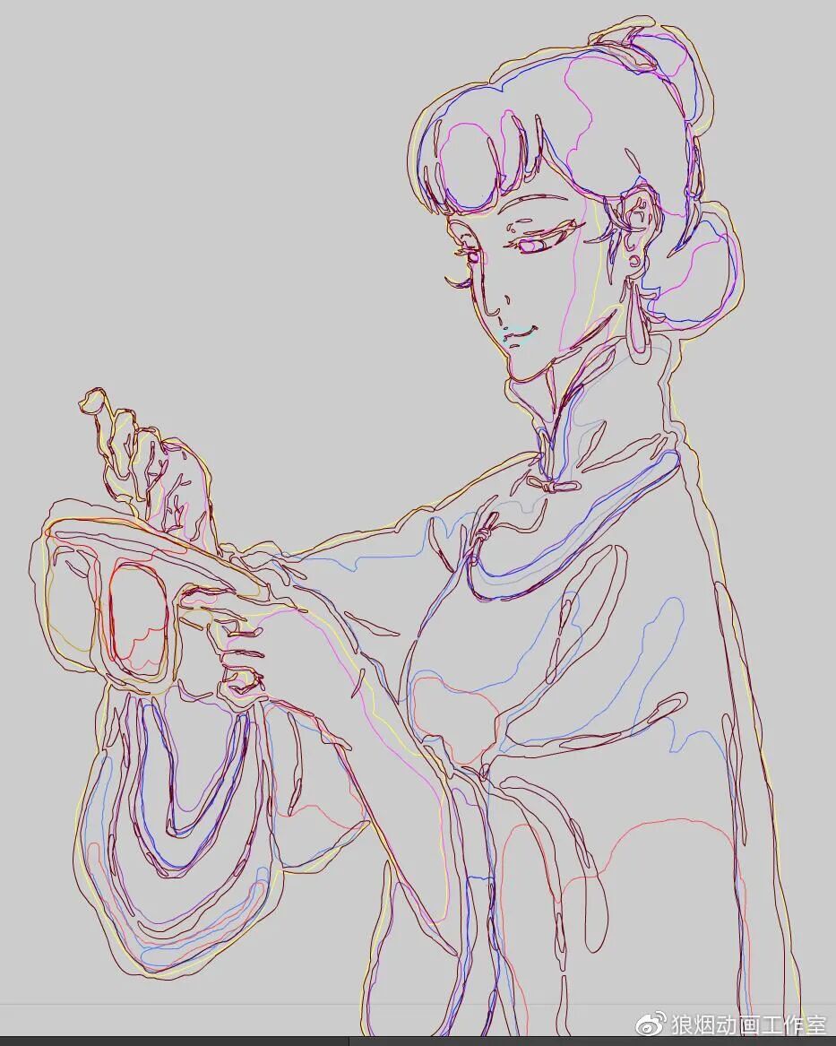 这主要是因为国画人物的边线不是单线,色块也不是一整块平涂,这些有变化的部分,不能以常规动画的单线和平涂方式来制作,而是需要把这些所有的部分,深墨、淡墨、色块全部分层进行描绘和处理。
