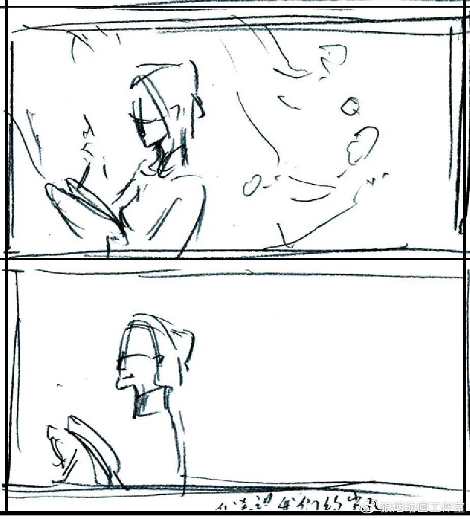 第一步分镜,虽然看起来非常潦草,主要是表达导演意图,不需要绘制得非常细致。
