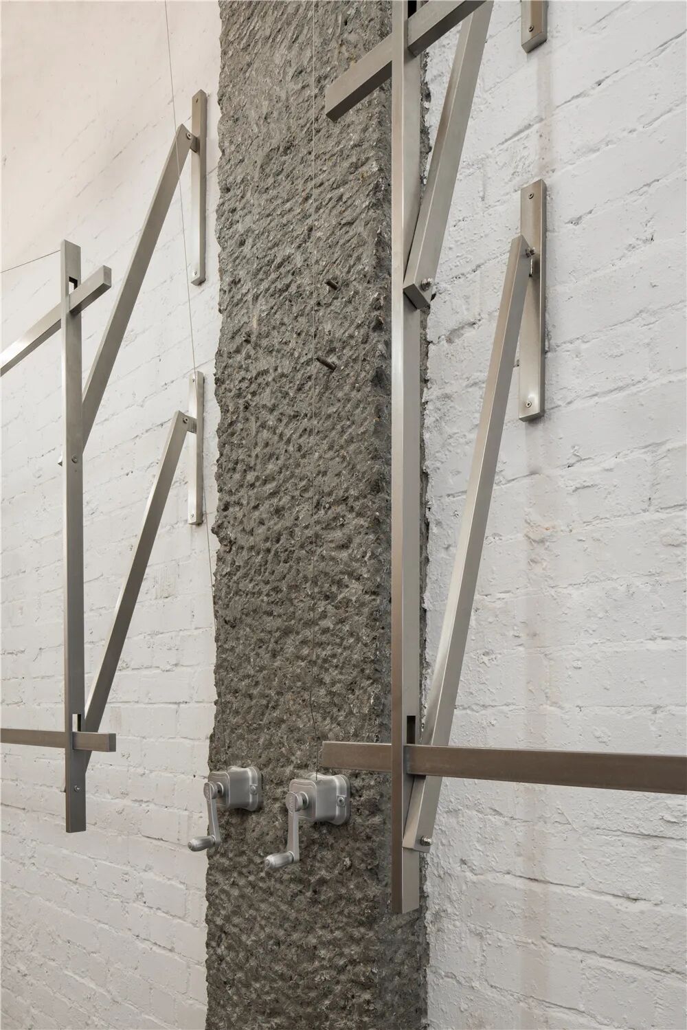 两面墙上的升降挂杆如同过去探出阳台的晾衣架,白天降下来作为服装陈列,到了闭店后全部升起,伴随灯光的切换,恰好成为了一件大型艺术装置。每天陈列的更迭,都让这件艺术品产生细微的区别,是生活的刚需,也是生活的艺术。