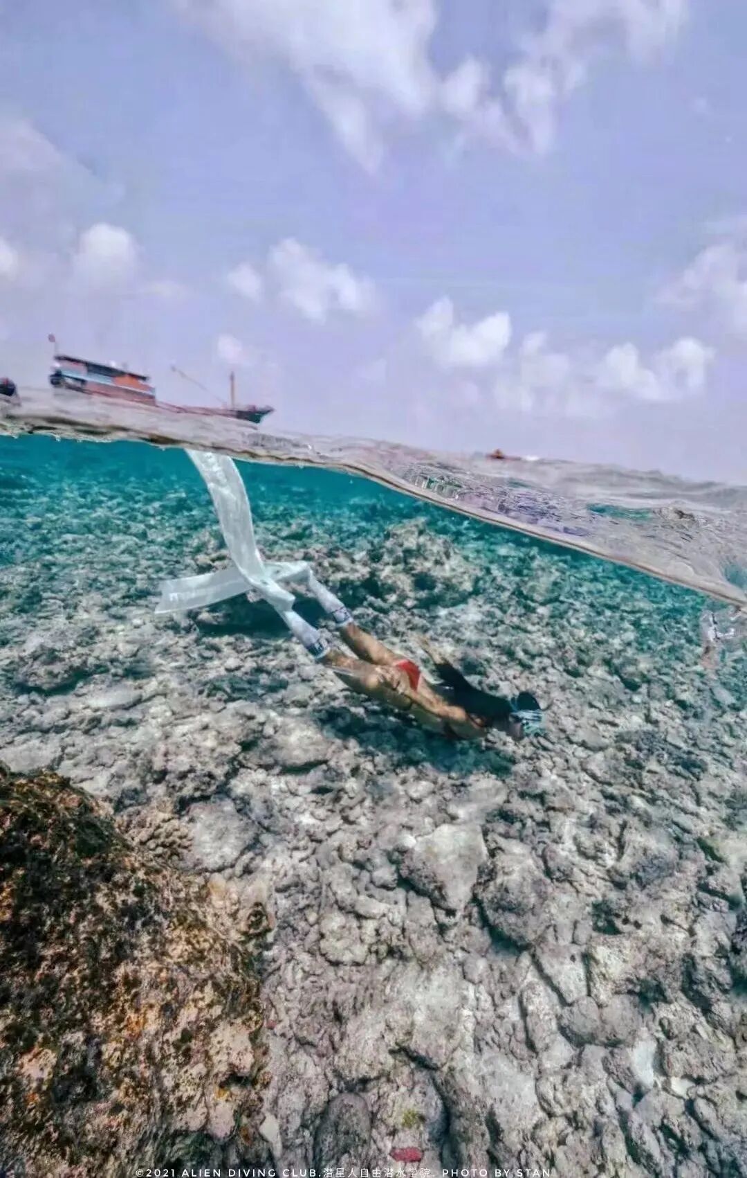 Stan的自由潜授课对象还包括青少年。“对青少年进行自由潜水培训的过程中,培养环保的理念是非常重要的环节。”除了讲述海洋垃圾的危害之外,在下海训练的过程中,Stan会带着小朋友一起捡垃圾,也是提高小朋友对环保产生兴趣的方式。“上岸之后会和学员数一数我们一共捡了多少垃圾,很有成就感。”