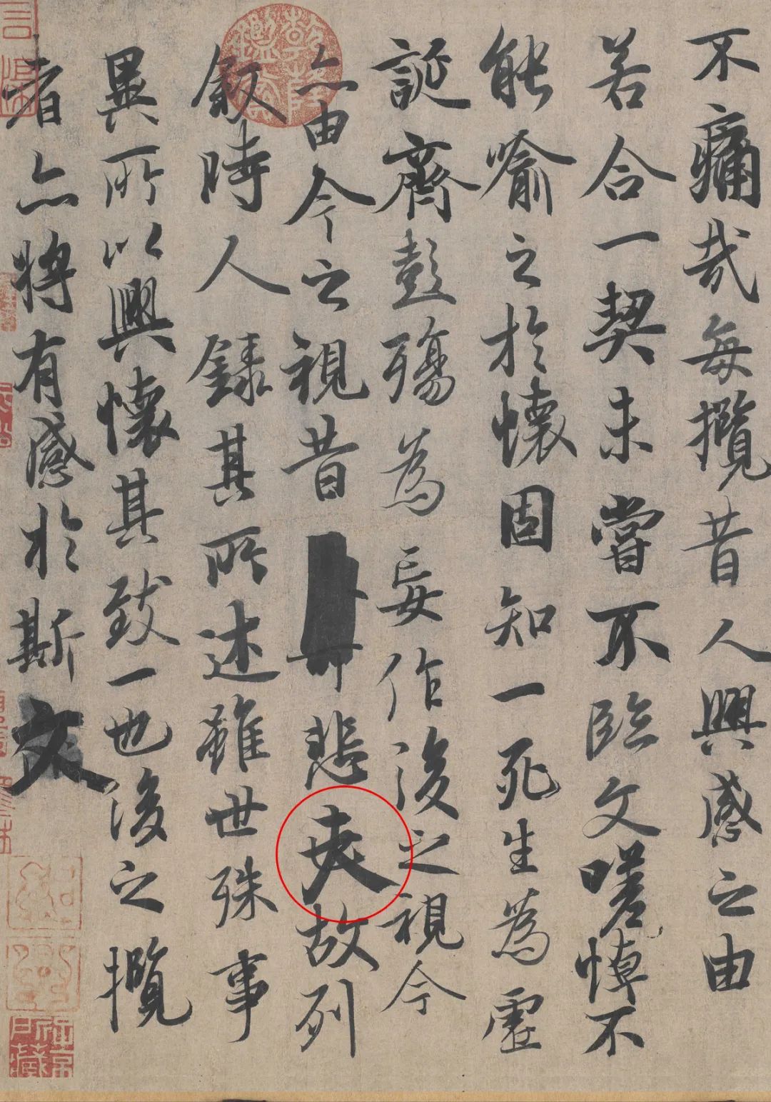 我们看看《兰亭序》其他用笔细节,下方是高手用“鼠须笔”推演王羲之《兰亭序》用笔细节,果然高妙!