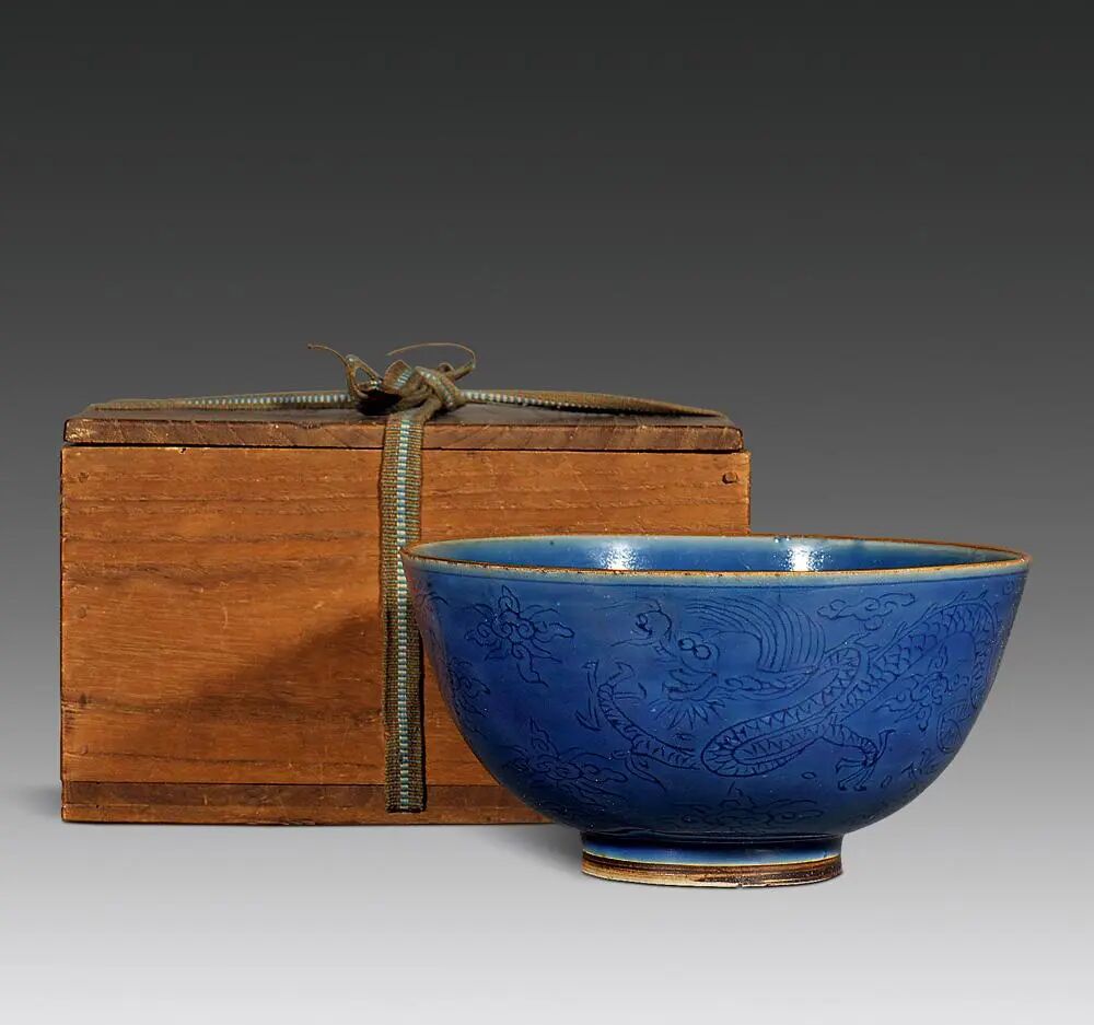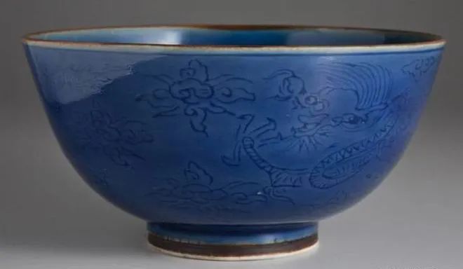 ▲ 明 嘉靖 回青釉暗刻云龙纹碗