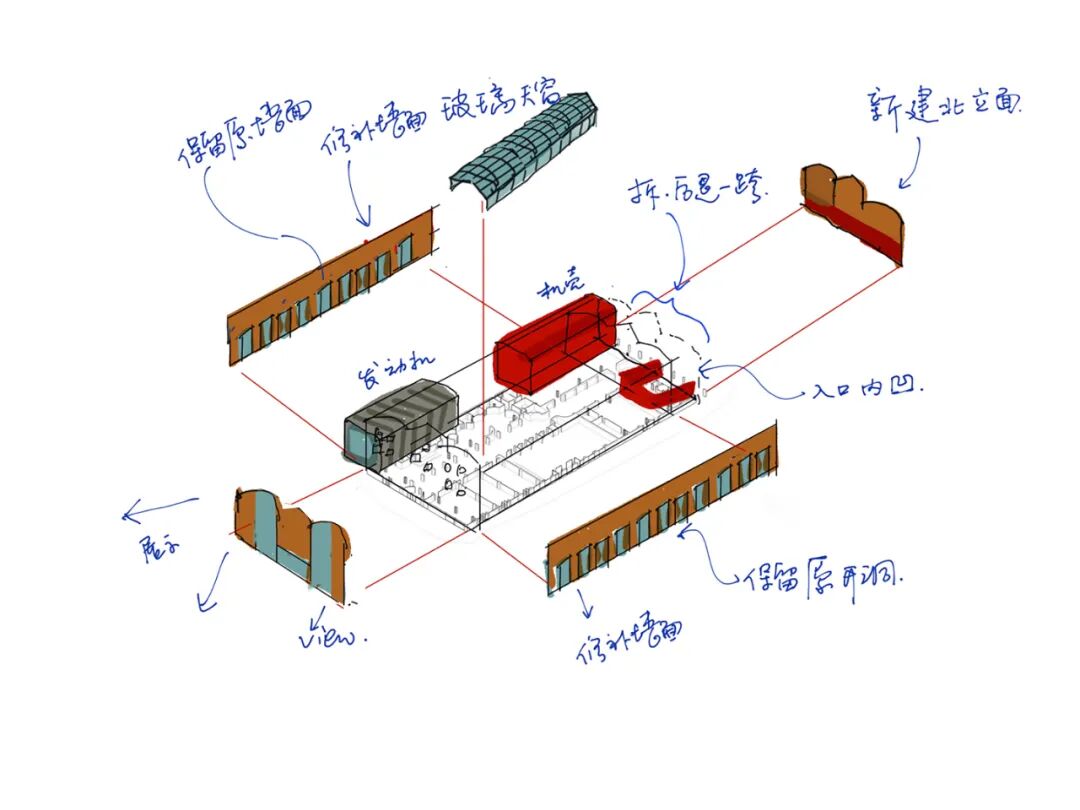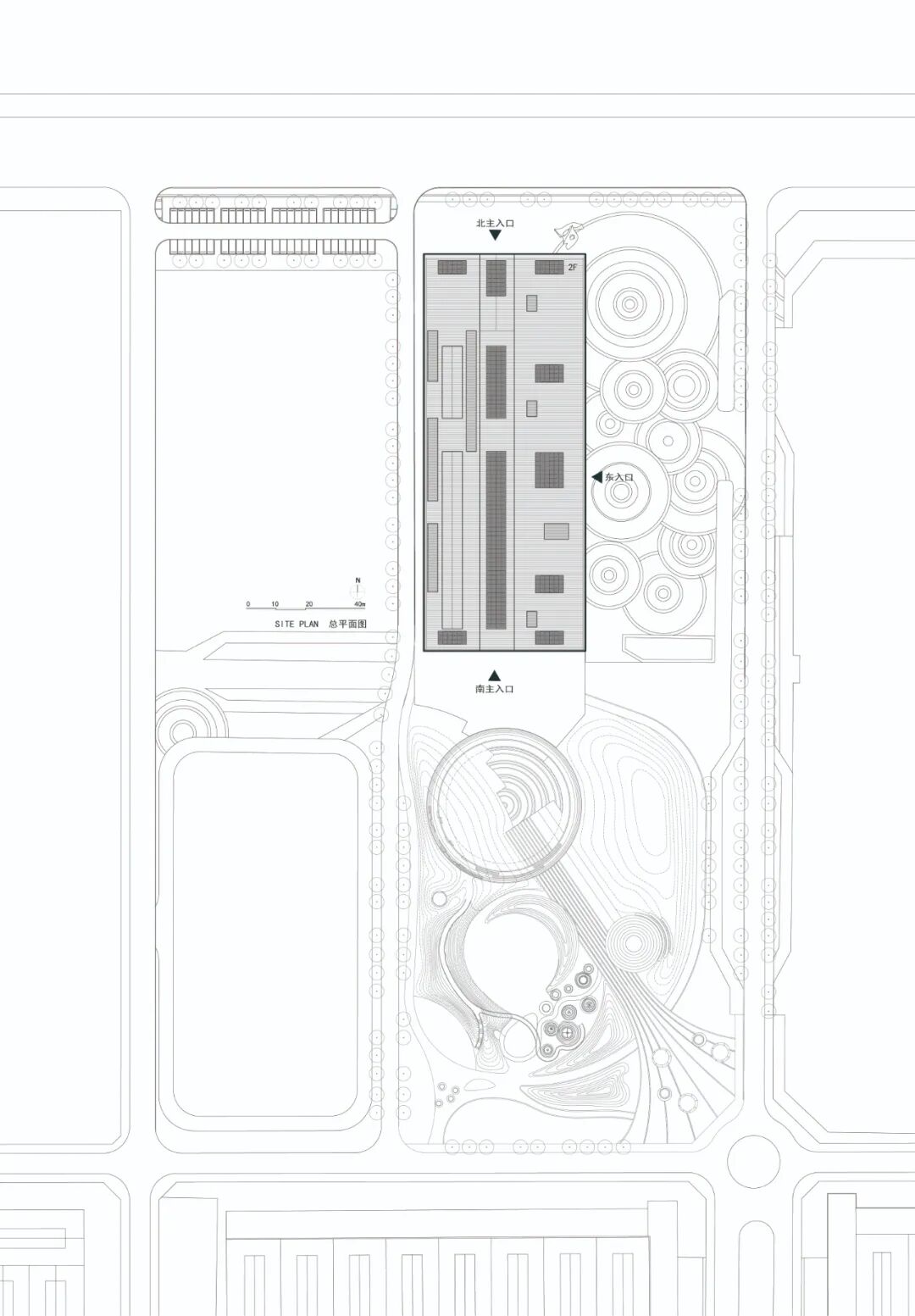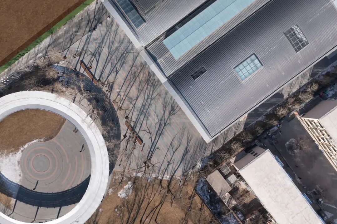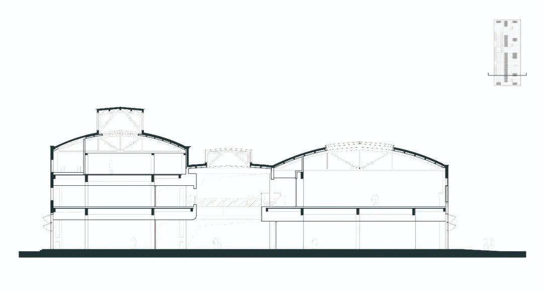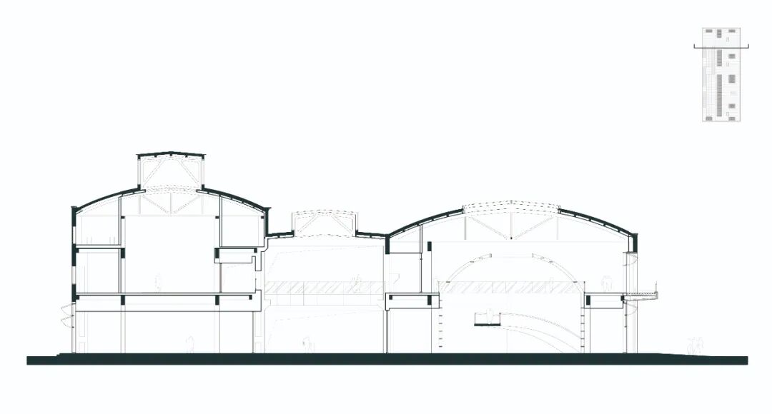 作品集2023-07-20 老厂房改造 | 长春拖拉机厂1958铸光仓 南立面夜景 @ 金伟琦 01.背景 长春拖拉机厂 1961 年建成,2006 年宣布破产并关闭。整个园区(厂房区域)包括 6 栋大型厂房,建筑用地约 14 万平方米。2020 年万科对原拖拉机厂进行重新规划,#3厂房“铸造车间”是第一个改造的厂房。它既是一个文保建筑,同时也希望能成为一个活跃的文化商业综合体,激活社区,加速整个园区改造的步伐。这就要求设计师冲破狭义的建筑视角,以人的活动为出发点,整合空间,景观,艺术,商业策划等资源,创造出一个真实的,具有持续活力的“城市客厅”。 西北角鸟瞰 @ 金伟琦 改造前鸟瞰 @ VANKE #3改造前现状 @ E+UV 02.改造策略 1.叠加 控制文物保护与活化使用之间的微妙平衡,通过新旧物件的叠加,形成一种混搭,对比的张力。建筑设计的留白,给后续的使用者提供参与再创造的可能性,使建筑成为不断丰富的沉积物,不断进化的生命体。 厂房现状结构分析 @ E+UV “叠加”概念草图 @ E+UV 南立面 @ YUAN STUDIO 北立面 @ 金伟琦 2.“切片”| Slice 建筑是凝固的时空。我们希望设计可以跨越英雄式的思维,和自上而下的纯粹审美。尽量保留历史使用的痕迹,叠加当下的活动印记,使当下改造的结果作为一份历史切片,反映当下的社会状态及人的需求。 “切片”示意图@E+UV 南广场俯瞰 @ YUAN STUDIO 03.建筑立面 北立面作为面向城市的亮相,在原有建筑轮廓基础上,2602 片体现机器美学的紫铜叶片,从下至上旋转 43 度,寓意长拖 43 年的历史。南面朝向公园,大面积玻璃幕墙,结合银灰色钛锌板,呈现工业感与文艺气质相结合的界面。东西立面对原有砖墙进行了修复处理,木构方格窗更换成大面铝合金窗。插入的新模块--包括入口,阳台以及项目标志--都以灰色钛锌板为统一材料,展示新旧叠加对比。 东立面 © 金伟琦 东立面 © 金伟琦 东立面 © 金伟琦 04.空间规划 整个平面由一条 145 米的中轴串联。为了完整地展示原有厂房的桁架结构,我们执意保留了简洁的直线动线。通过营造不同的空间特色和光线变化,打破直线的单调感,形成空间的节奏。从北向南缓缓展开的是一幅时光长卷。 长轴剖面透视 @ E+UV 第一幕-时光廊:历史重现 从主入口进入,第一段“时光廊”展现的是原铸造车间的历史氛围,保留厂房老旧红砖墙,混凝土梁柱,桁架天窗,重现了当年的生产车间。地面暗埋了两副 21 米长的原装混凝土桁架,如历史化石般对人们诉说这里曾经的故事。 时光廊效果 @ 金伟琦 二层人视 @ YUAN STUDIO © YUAN STUDIO © YUAN STUDIO © YUAN STUDIO 艺术品“火之洗礼·光之物语” @ UAP 地面预埋绗架 @ E+UV 第二幕-林荫大街:绿色生活 在项目的中央,我们把厂区里承载集体记忆的中央大街,引入到室内空间里。四棵9米高的榉木,是空间的主角。在这个空间,混凝土绗架序列继续向前,但天窗变成透明玻璃。我们把原来的砖墙刷成清新的白色,配合银白色的栏板和玻璃栏杆,展现出和第一空间完全不一样的清新效果。 林荫大街效果 @ 金伟琦 二层透视 @ 金伟琦 @ 金伟琦 @ YUAN STUDIO @ YUAN STUDIO @ YUAN STUDIO 第三幕-发动机市集:未来·朋克 在发动机市集,银色流线形的镀锌钢板模拟发动机的外壳,弧形玻璃包厢极具未来感。这个空间同时也被设计成一个弹性使用空间,可以作为周末市集,快闪活动。二层两侧的包厢将会是绝佳的观演角度。 以银色为基调的市集大厅 @ 金伟琦 @ YUAN STUDIO 第四幕-BIGBOX:互动乐园 中央大厅“BIGBOX”拥有 28 米大跨,14 米净高。我们希望保留这种震撼的空间感,尽量彰显原来的大跨混凝土绗架结构。空间留白成为一个公共广场,而和原来坚硬,粗犷的建筑做了一个强烈的对比,我们在中间插入了一个软性的,具有幽默感的大型互动游乐装置“魔法熔炉“,让孩子们在游乐过程中对厂房的历史记忆形成独特的沉浸式体验。 魔法熔炉 @ 金伟琦 @ 金伟琦 @ 金伟琦 05.一次非典型的改造尝试 用商业设计的手法改造厂房空间,是我们的一个新的尝试。在这里,狭义的建筑美学让位与对人的活动的关注,和对场景营造的重视,以及对未来新陈代谢的弹性预期。铸光仓是整个长拖 1958 改造的第一次亮相,让历史照进现实,展现充满激情的未来场景。 43东南角鸟瞰@金伟琦 项目图纸 总平面图 一层平面图 二层平面图 北立面图 南立面图 东立面图 剖面图 剖面图 剖面图 项目名称:拖拉机厂新生——长拖1958•铸光仓 建筑设计:易加·UV 项目:2021年12月 建筑面积:13,000㎡ 项目地址:长春市 二道区 东新路 万科蓝山F区东北侧 主创建筑师:周奕奕 委托方:长春万科 摄影版权:金伟琦,YUAN STUDIO 本文来自微信公众号“景观设计小学徒”(ID:laxxt2013)。大作社经授权转载,该文观点仅代表作者本人,大作社平台仅提供信息存储空间服务。 TAGS: 厂房建筑改造空间 相关文章Kleoniki Andr…这是大王Day.281获奖作品《2020最佳图书…精选头像|搞怪来袭!安东尼奥·布埃诺 作品配色清新梦幻的场景插画,充…美国Jennifer Mc…【小鹏设计】设计小改/动力…【首发】地点空间丨打破空间…谢商家不坑之恩!只骗有钱人…