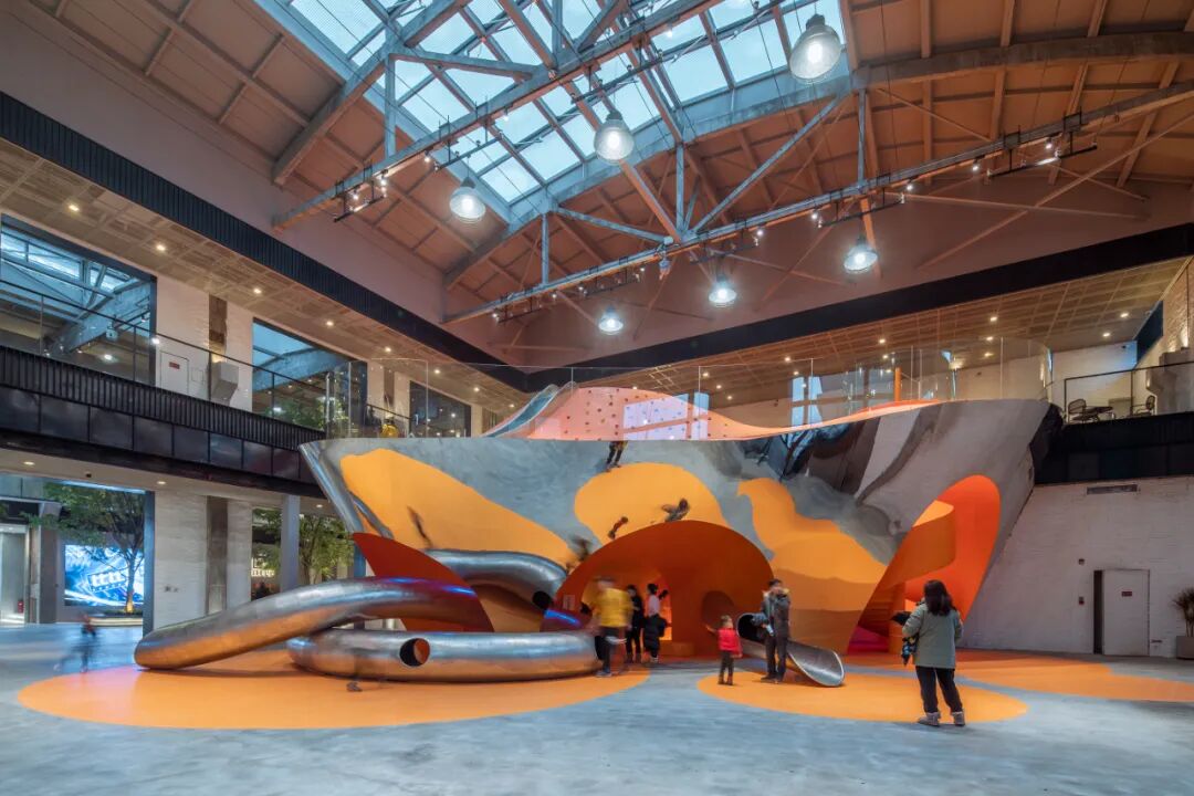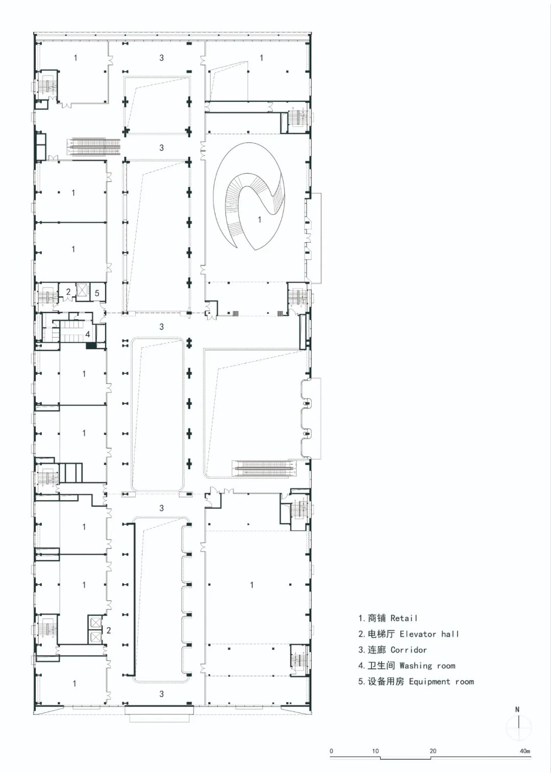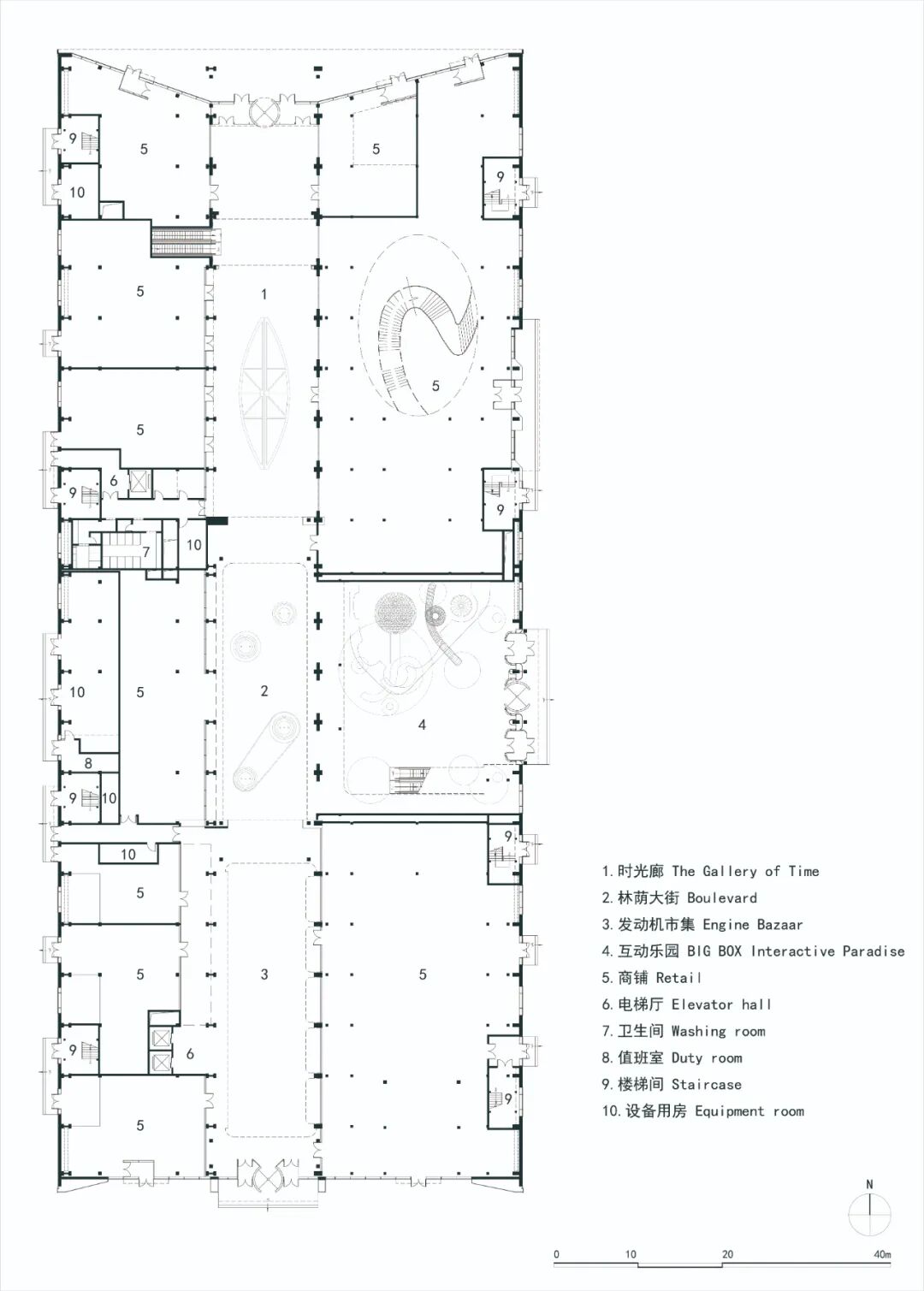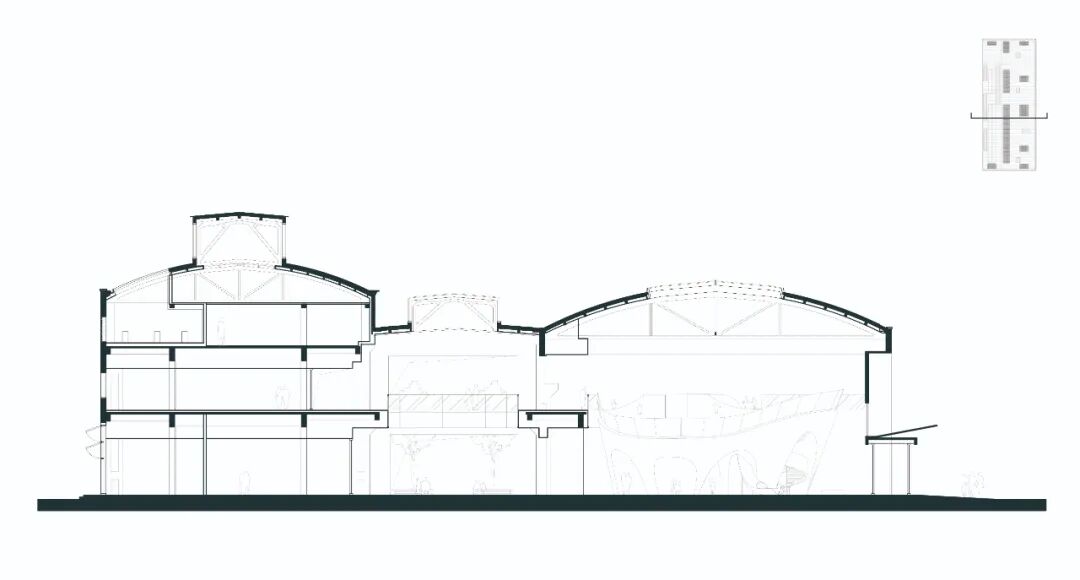 作品集2023-07-20 老厂房改造 | 长春拖拉机厂1958铸光仓 南立面夜景 @ 金伟琦 01.背景 长春拖拉机厂 1961 年建成,2006 年宣布破产并关闭。整个园区(厂房区域)包括 6 栋大型厂房,建筑用地约 14 万平方米。2020 年万科对原拖拉机厂进行重新规划,#3厂房“铸造车间”是第一个改造的厂房。它既是一个文保建筑,同时也希望能成为一个活跃的文化商业综合体,激活社区,加速整个园区改造的步伐。这就要求设计师冲破狭义的建筑视角,以人的活动为出发点,整合空间,景观,艺术,商业策划等资源,创造出一个真实的,具有持续活力的“城市客厅”。 西北角鸟瞰 @ 金伟琦 改造前鸟瞰 @ VANKE #3改造前现状 @ E+UV 02.改造策略 1.叠加 控制文物保护与活化使用之间的微妙平衡,通过新旧物件的叠加,形成一种混搭,对比的张力。建筑设计的留白,给后续的使用者提供参与再创造的可能性,使建筑成为不断丰富的沉积物,不断进化的生命体。 厂房现状结构分析 @ E+UV “叠加”概念草图 @ E+UV 南立面 @ YUAN STUDIO 北立面 @ 金伟琦 2.“切片”| Slice 建筑是凝固的时空。我们希望设计可以跨越英雄式的思维,和自上而下的纯粹审美。尽量保留历史使用的痕迹,叠加当下的活动印记,使当下改造的结果作为一份历史切片,反映当下的社会状态及人的需求。 “切片”示意图@E+UV 南广场俯瞰 @ YUAN STUDIO 03.建筑立面 北立面作为面向城市的亮相,在原有建筑轮廓基础上,2602 片体现机器美学的紫铜叶片,从下至上旋转 43 度,寓意长拖 43 年的历史。南面朝向公园,大面积玻璃幕墙,结合银灰色钛锌板,呈现工业感与文艺气质相结合的界面。东西立面对原有砖墙进行了修复处理,木构方格窗更换成大面铝合金窗。插入的新模块--包括入口,阳台以及项目标志--都以灰色钛锌板为统一材料,展示新旧叠加对比。 东立面 © 金伟琦 东立面 © 金伟琦 东立面 © 金伟琦 04.空间规划 整个平面由一条 145 米的中轴串联。为了完整地展示原有厂房的桁架结构,我们执意保留了简洁的直线动线。通过营造不同的空间特色和光线变化,打破直线的单调感,形成空间的节奏。从北向南缓缓展开的是一幅时光长卷。 长轴剖面透视 @ E+UV 第一幕-时光廊:历史重现 从主入口进入,第一段“时光廊”展现的是原铸造车间的历史氛围,保留厂房老旧红砖墙,混凝土梁柱,桁架天窗,重现了当年的生产车间。地面暗埋了两副 21 米长的原装混凝土桁架,如历史化石般对人们诉说这里曾经的故事。 时光廊效果 @ 金伟琦 二层人视 @ YUAN STUDIO © YUAN STUDIO © YUAN STUDIO © YUAN STUDIO 艺术品“火之洗礼·光之物语” @ UAP 地面预埋绗架 @ E+UV 第二幕-林荫大街:绿色生活 在项目的中央,我们把厂区里承载集体记忆的中央大街,引入到室内空间里。四棵9米高的榉木,是空间的主角。在这个空间,混凝土绗架序列继续向前,但天窗变成透明玻璃。我们把原来的砖墙刷成清新的白色,配合银白色的栏板和玻璃栏杆,展现出和第一空间完全不一样的清新效果。 林荫大街效果 @ 金伟琦 二层透视 @ 金伟琦 @ 金伟琦 @ YUAN STUDIO @ YUAN STUDIO @ YUAN STUDIO 第三幕-发动机市集:未来·朋克 在发动机市集,银色流线形的镀锌钢板模拟发动机的外壳,弧形玻璃包厢极具未来感。这个空间同时也被设计成一个弹性使用空间,可以作为周末市集,快闪活动。二层两侧的包厢将会是绝佳的观演角度。 以银色为基调的市集大厅 @ 金伟琦 @ YUAN STUDIO 第四幕-BIGBOX:互动乐园 中央大厅“BIGBOX”拥有 28 米大跨,14 米净高。我们希望保留这种震撼的空间感,尽量彰显原来的大跨混凝土绗架结构。空间留白成为一个公共广场,而和原来坚硬,粗犷的建筑做了一个强烈的对比,我们在中间插入了一个软性的,具有幽默感的大型互动游乐装置“魔法熔炉“,让孩子们在游乐过程中对厂房的历史记忆形成独特的沉浸式体验。 魔法熔炉 @ 金伟琦 @ 金伟琦 @ 金伟琦 05.一次非典型的改造尝试 用商业设计的手法改造厂房空间,是我们的一个新的尝试。在这里,狭义的建筑美学让位与对人的活动的关注,和对场景营造的重视,以及对未来新陈代谢的弹性预期。铸光仓是整个长拖 1958 改造的第一次亮相,让历史照进现实,展现充满激情的未来场景。 43东南角鸟瞰@金伟琦 项目图纸 总平面图 一层平面图 二层平面图 北立面图 南立面图 东立面图 剖面图 剖面图 剖面图 项目名称:拖拉机厂新生——长拖1958•铸光仓 建筑设计:易加·UV 项目:2021年12月 建筑面积:13,000㎡ 项目地址:长春市 二道区 东新路 万科蓝山F区东北侧 主创建筑师:周奕奕 委托方:长春万科 摄影版权:金伟琦,YUAN STUDIO 本文来自微信公众号“景观设计小学徒”(ID:laxxt2013)。大作社经授权转载,该文观点仅代表作者本人,大作社平台仅提供信息存储空间服务。 TAGS: 厂房建筑改造空间 相关文章Kleoniki Andr…这是大王Day.281获奖作品《2020最佳图书…精选头像|搞怪来袭!安东尼奥·布埃诺 作品配色清新梦幻的场景插画,充…美国Jennifer Mc…【小鹏设计】设计小改/动力…【首发】地点空间丨打破空间…谢商家不坑之恩!只骗有钱人…