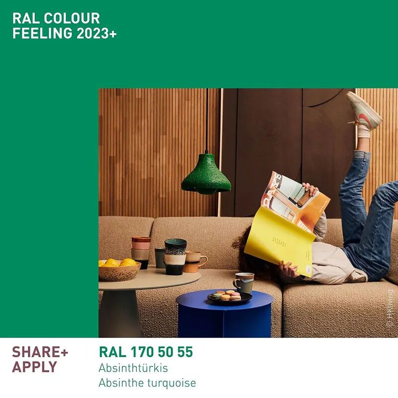 RAL 170 50 55的色相来自蓝绿区域(170°),具有中等明度(50)和高彩度(55)。苦艾酒绿松石给人坚定、运动和清爽的感觉。由于它的活力,苦艾酒绿松石色比这个调色板中的大多数其他趋势色更及时,这让它成为打造前沿外观的绝佳选择。选择全光泽度,可以获得最大冲击力;或选择天鹅绒哑光质感,呈现更微妙的效果。