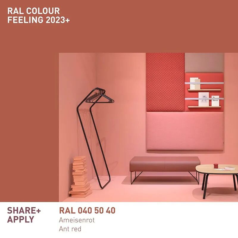 RAL 040 50 40的色相来自红橙区域(040°),具有中等明度(50),和相对较高的彩度(40)。蚂蚁红散发出温暖、感性和淡然。这种阳光烘烤般的颜色经常与砖块和陶土联系在一起,适用于任何饰面。带有光泽和透明的材料会给设计增添特别的现代感。